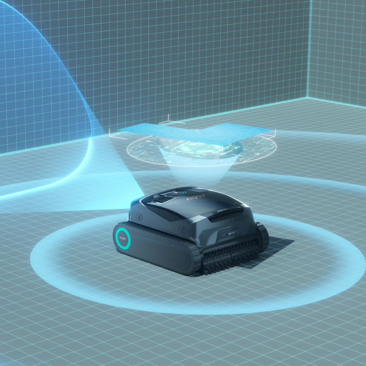 Intelligente Pool-Navigation: Der Aiper Scuba X1 PRO 2025 nutzt die fortschrittliche OmniSense+™-Ultraschalltechnologie, um Ihren Pool autonom zu kartieren und zu navigieren. Die Technologie gewährleistet eine vollständige Abdeckung des Pools und passt sich dynamisch an die Geometrie des Beckens an, einschließlich Wänden, Leitern und unterschiedlichen Tiefen, um eine gründliche und gleichmäßige Reinigung zu ermöglichen.