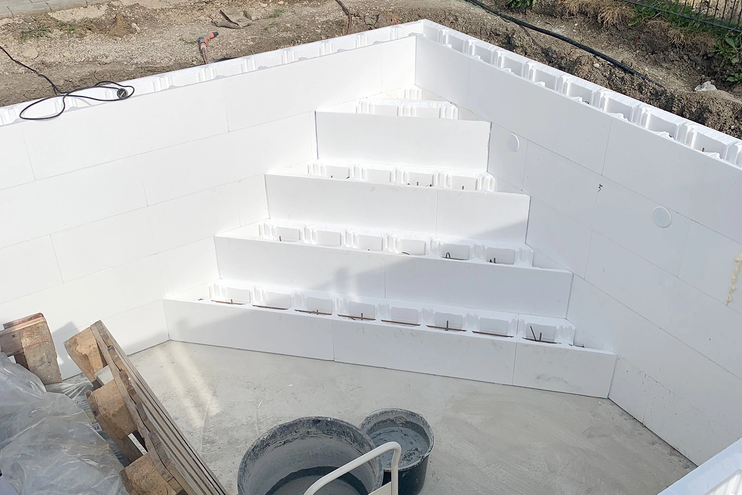 Styroporpool, 1000 x 400 x 120 cm, Basis-Bausatz mit Ecktreppe links
