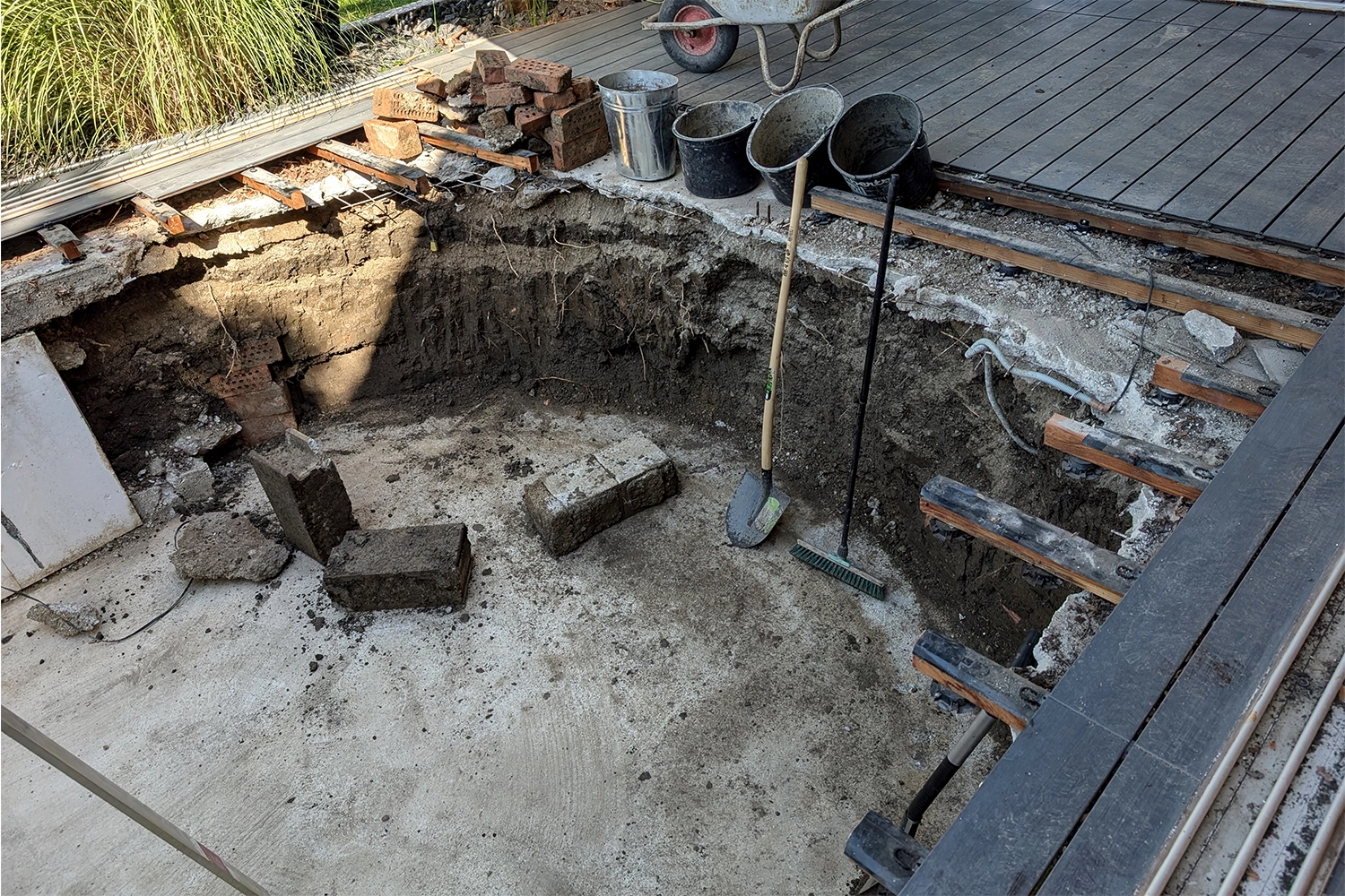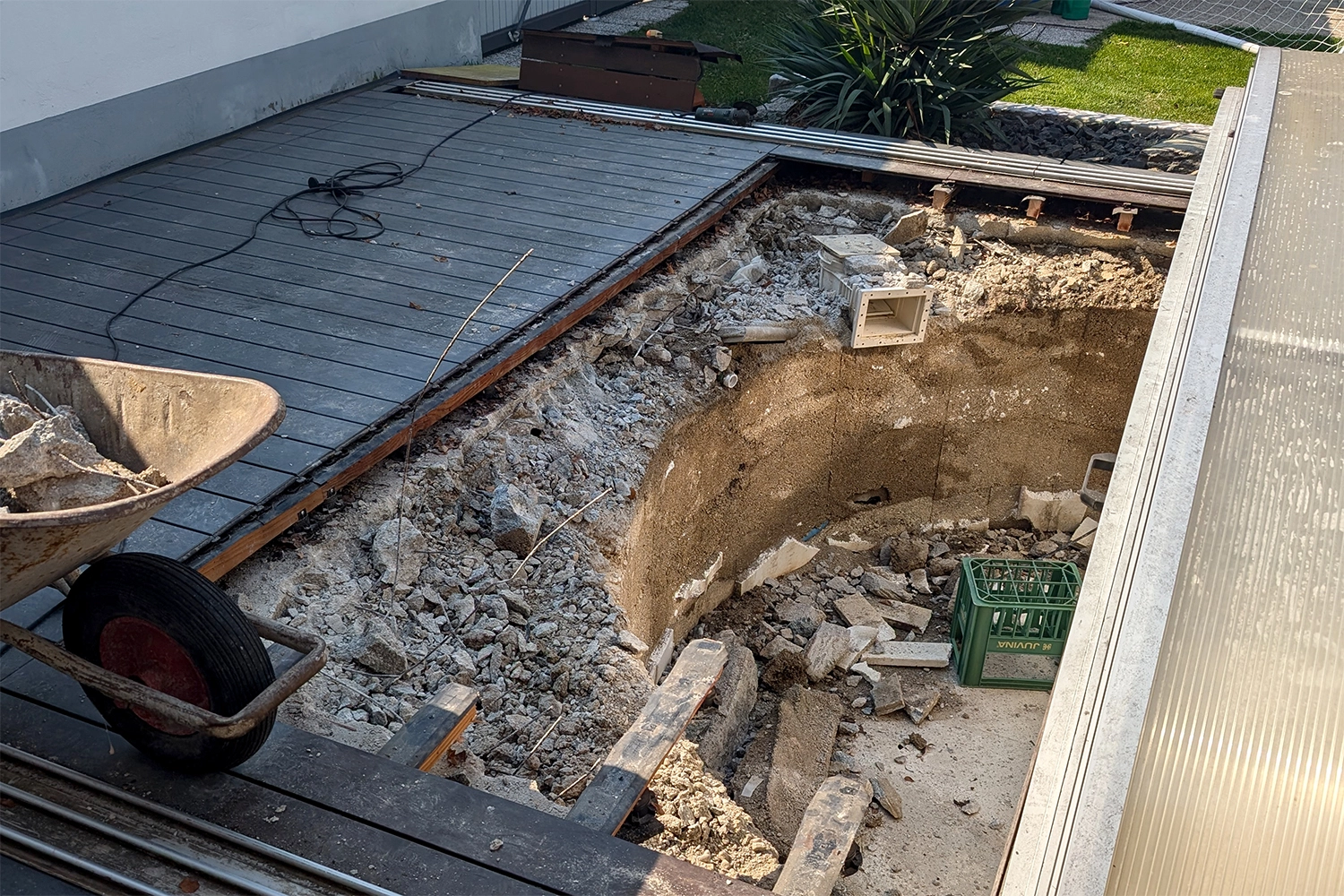 In meiner Situation das Alte Pool raus und den bestehenden Beton weck stemmen und alles händisch rausheben