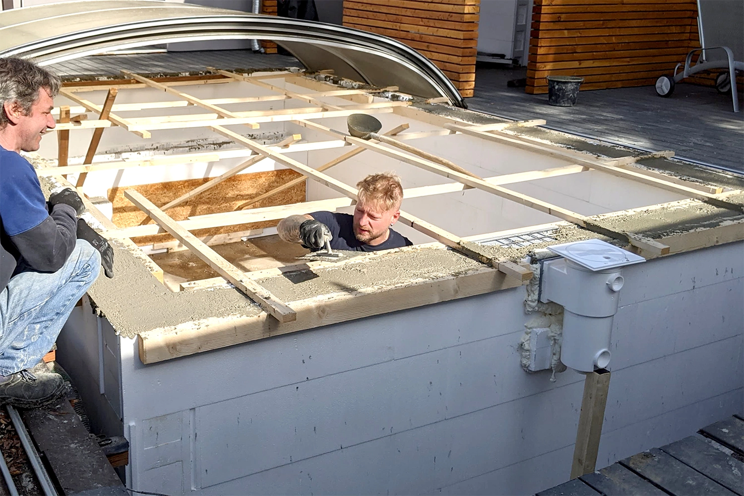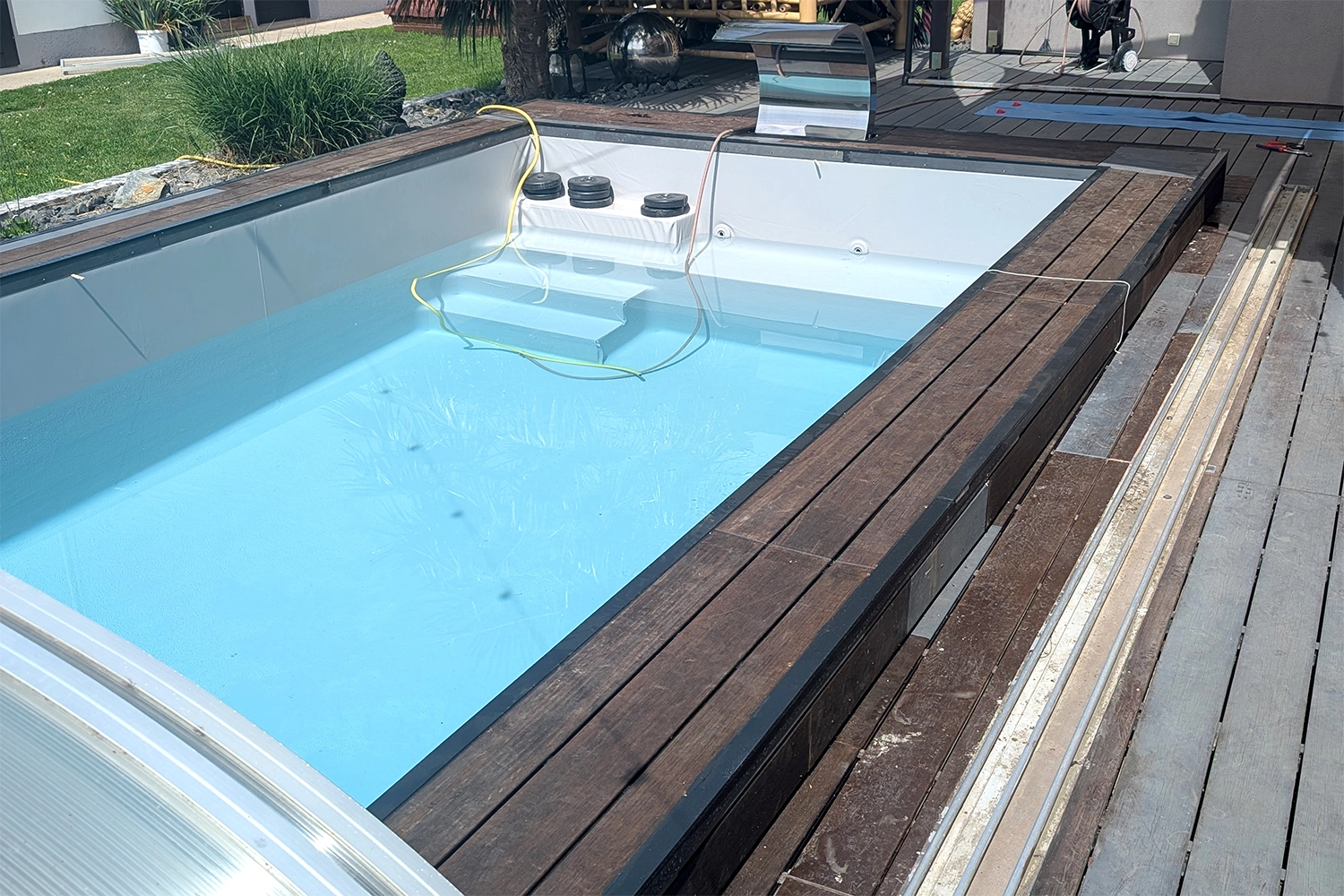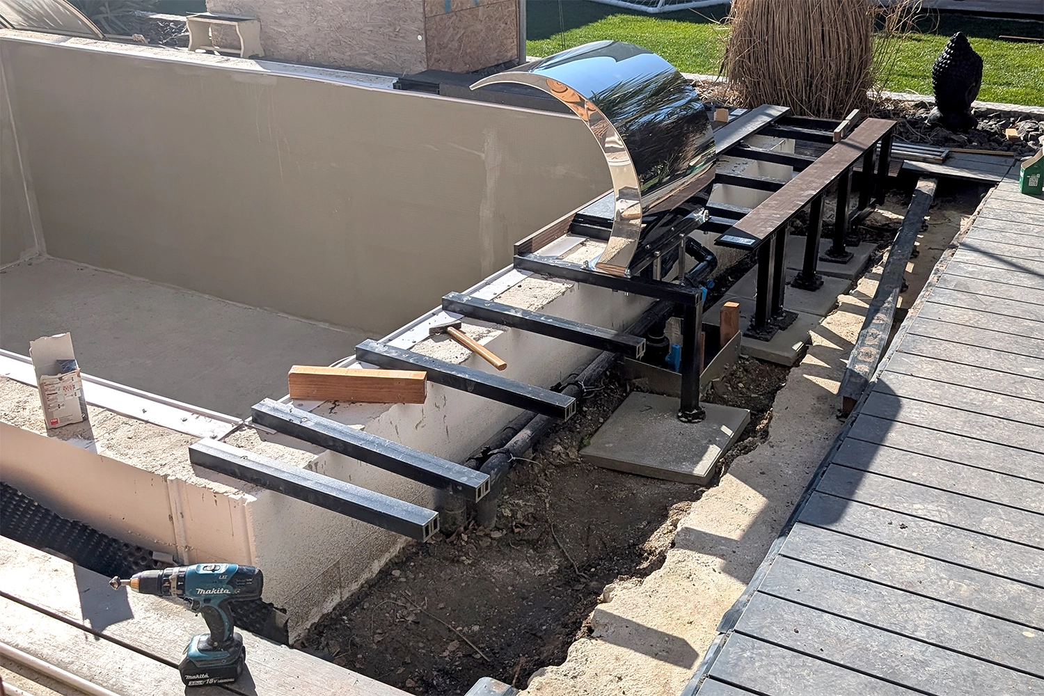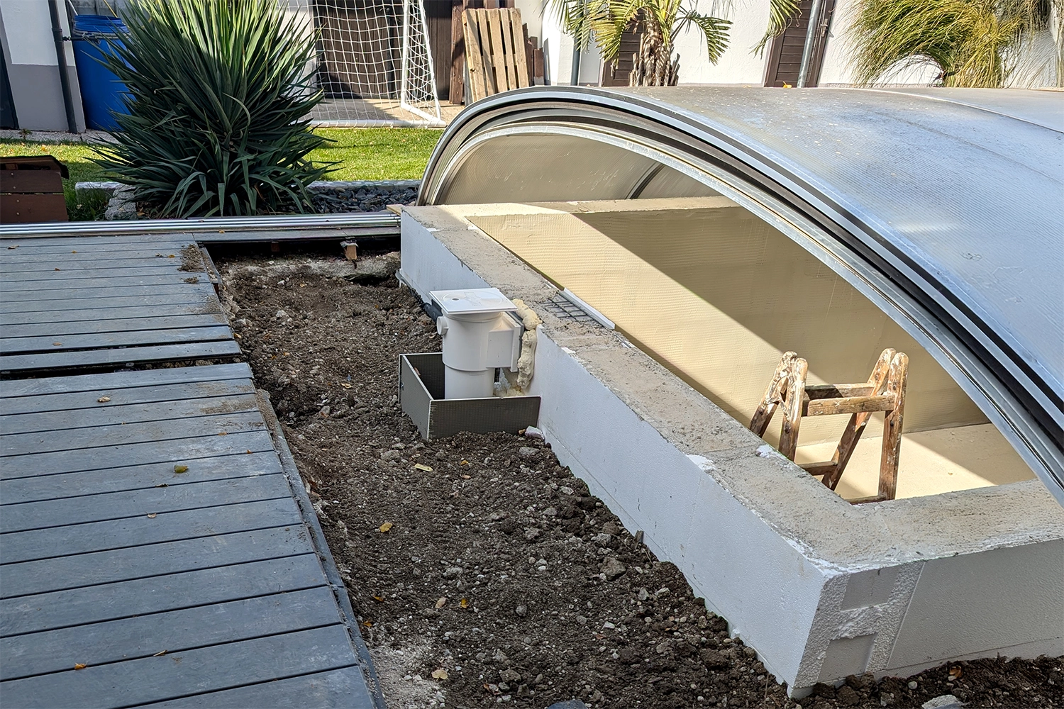 Wir hatten einen Stahlwandpool und wollten unbedingt ein tiefes Pool mit Treppe und Liegefläche also altes Pool raus und Styroporsteine rein. Den alten Beton weck zu stemmen und raus heben war schon eine ziemliche Herausforderung aber am Ende war es jeder Schweißtropfen wert. Die Unterstützung bei Problem von Seiten Apoolco ist einfach großartig und ich bin froh mich für euch entschieden zu haben. Mein Traum war immer ein tiefes Pool mit Liegefläche und Treppe und euer Pool hat das mehr als übertroffen