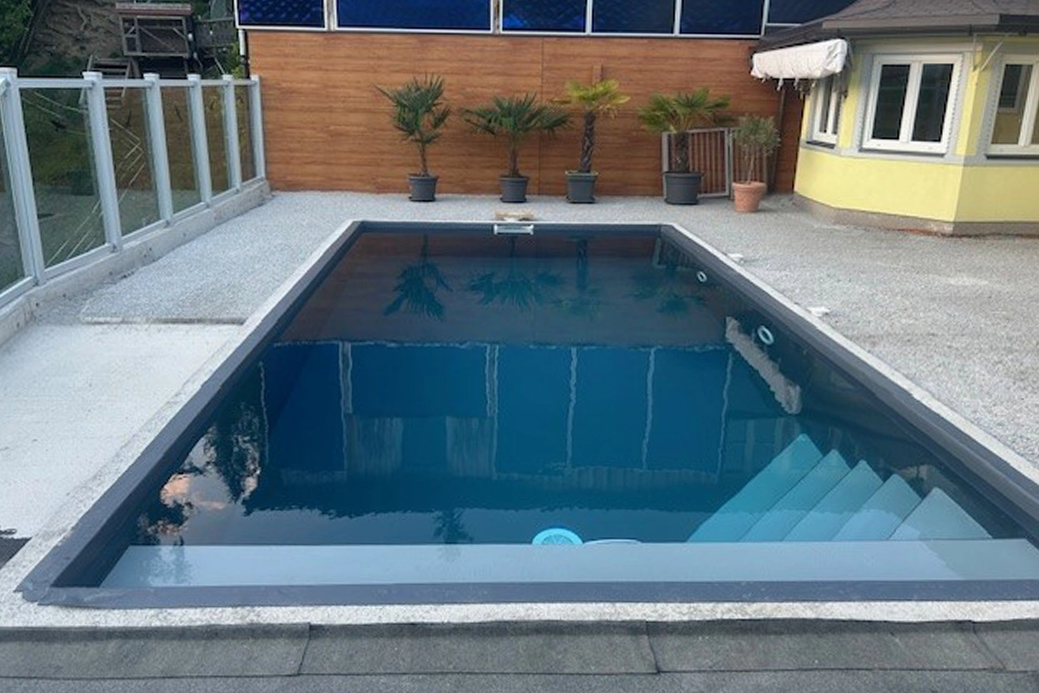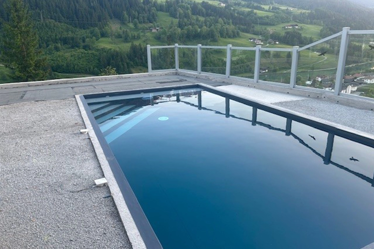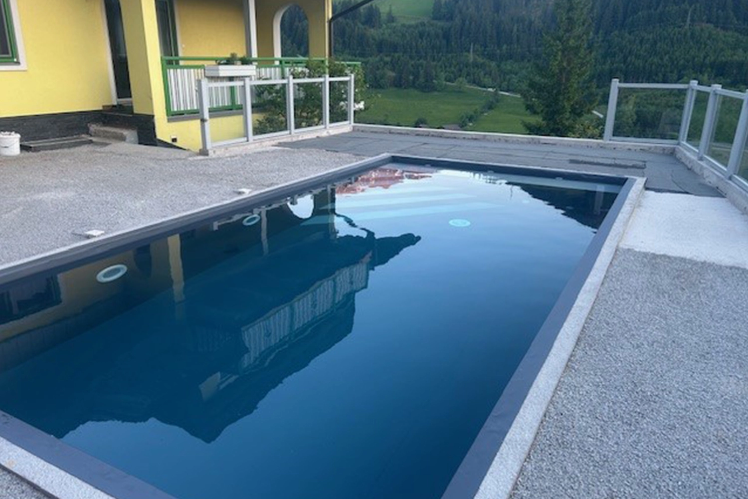Pool mit Ecktreppe & Sitzbank von Familie K., Taxenbach