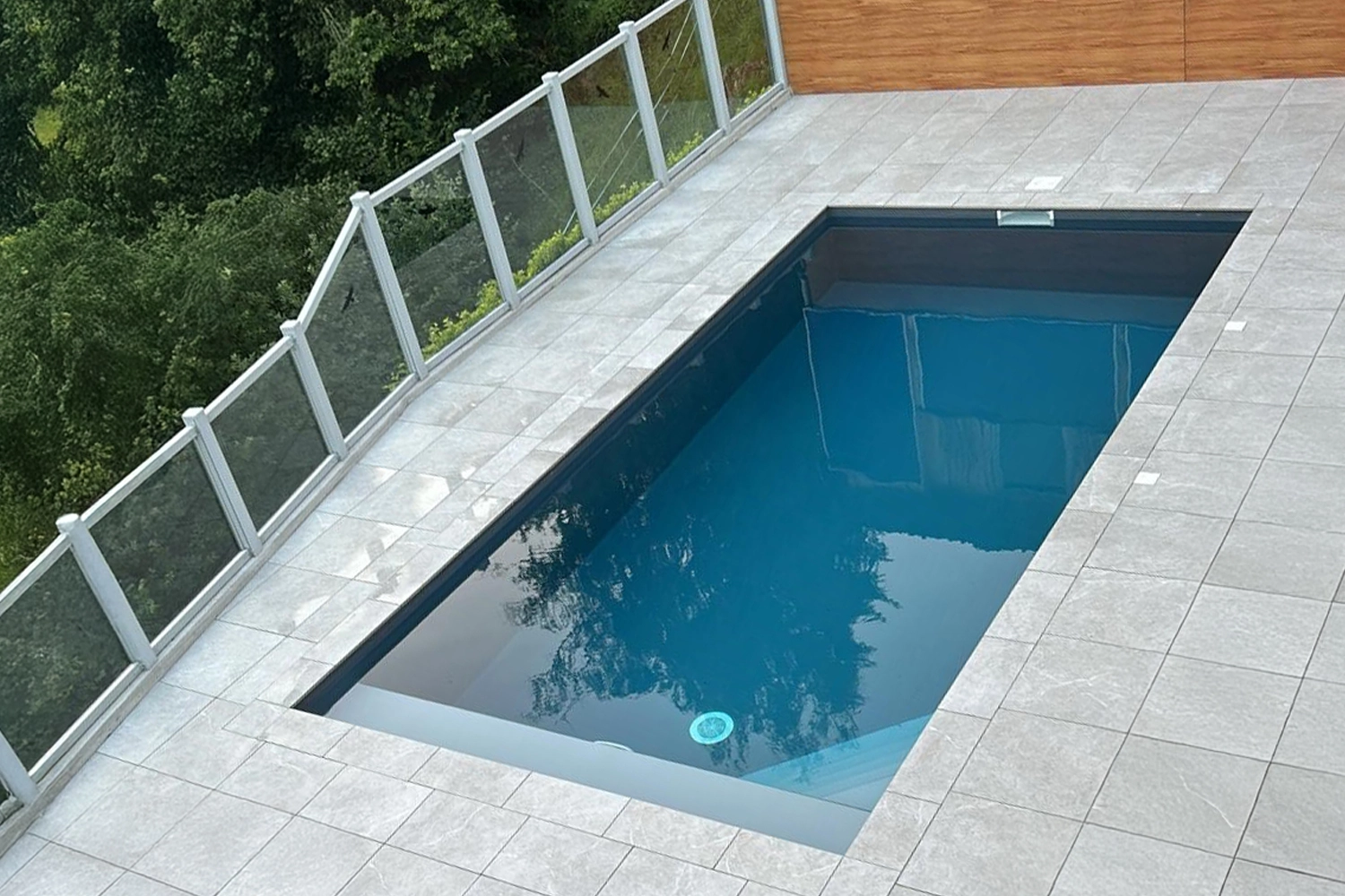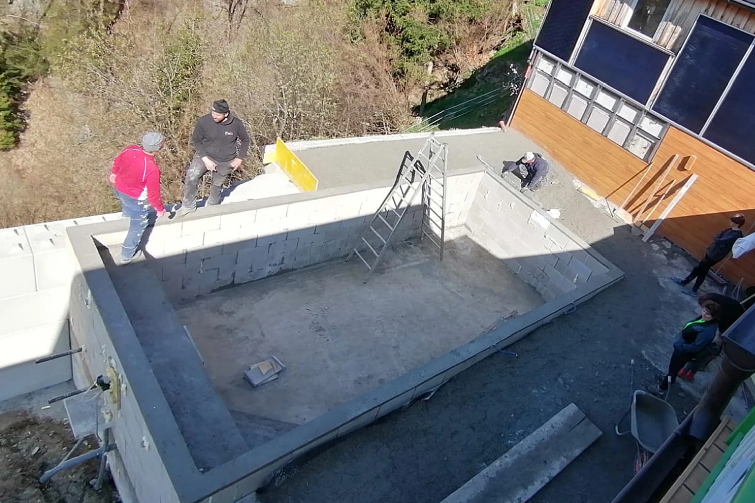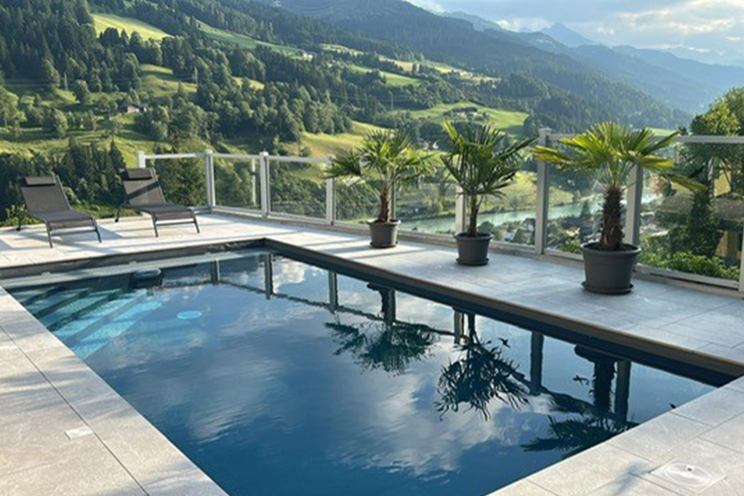Pool mit Ecktreppe & Sitzbank von Familie K., Taxenbach