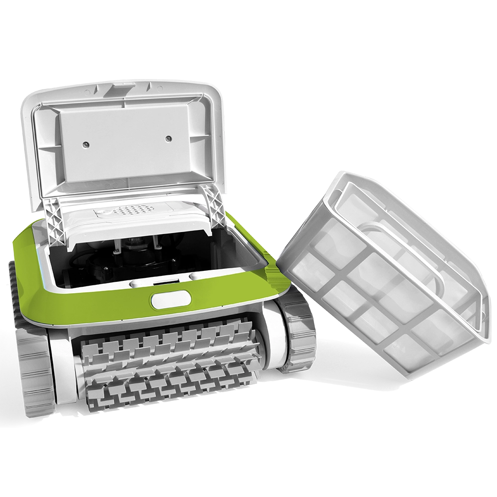 Zwei separate Filter sind ein Geheimnis, warum der Poolroboter so toll arbeitet: Der äußere Filter kümmert sich um die großen Schmutzteilchen, während der ultrafeine Innenfilter die allerkleinsten Partikel aus dem Wasser fängt.