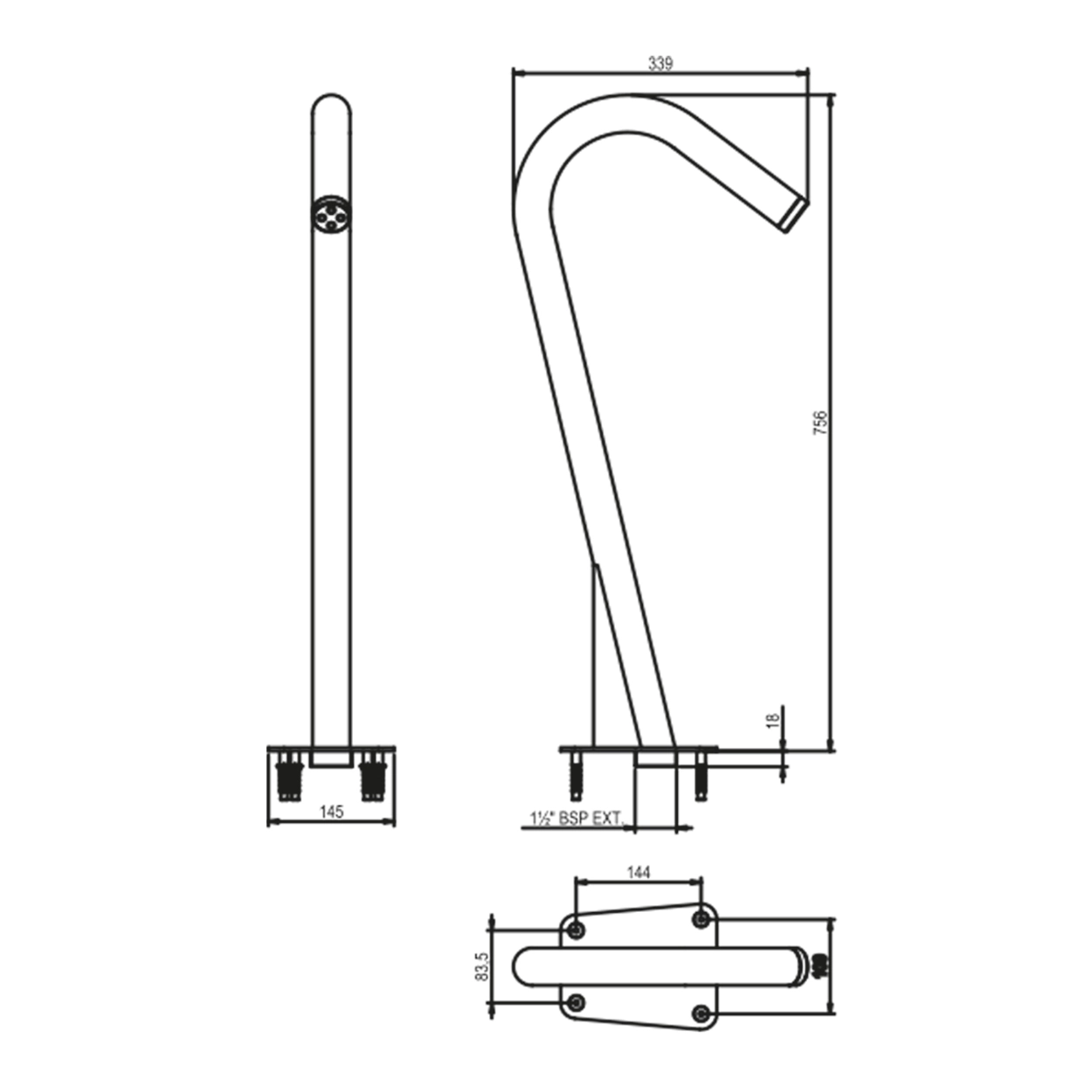 - Edelstahlschwallrohr, Höhe: 757 mm, 1 1/2" A.G. mit vierstrahliger Düse, es ist kein Betoneinbauteil notwendig.