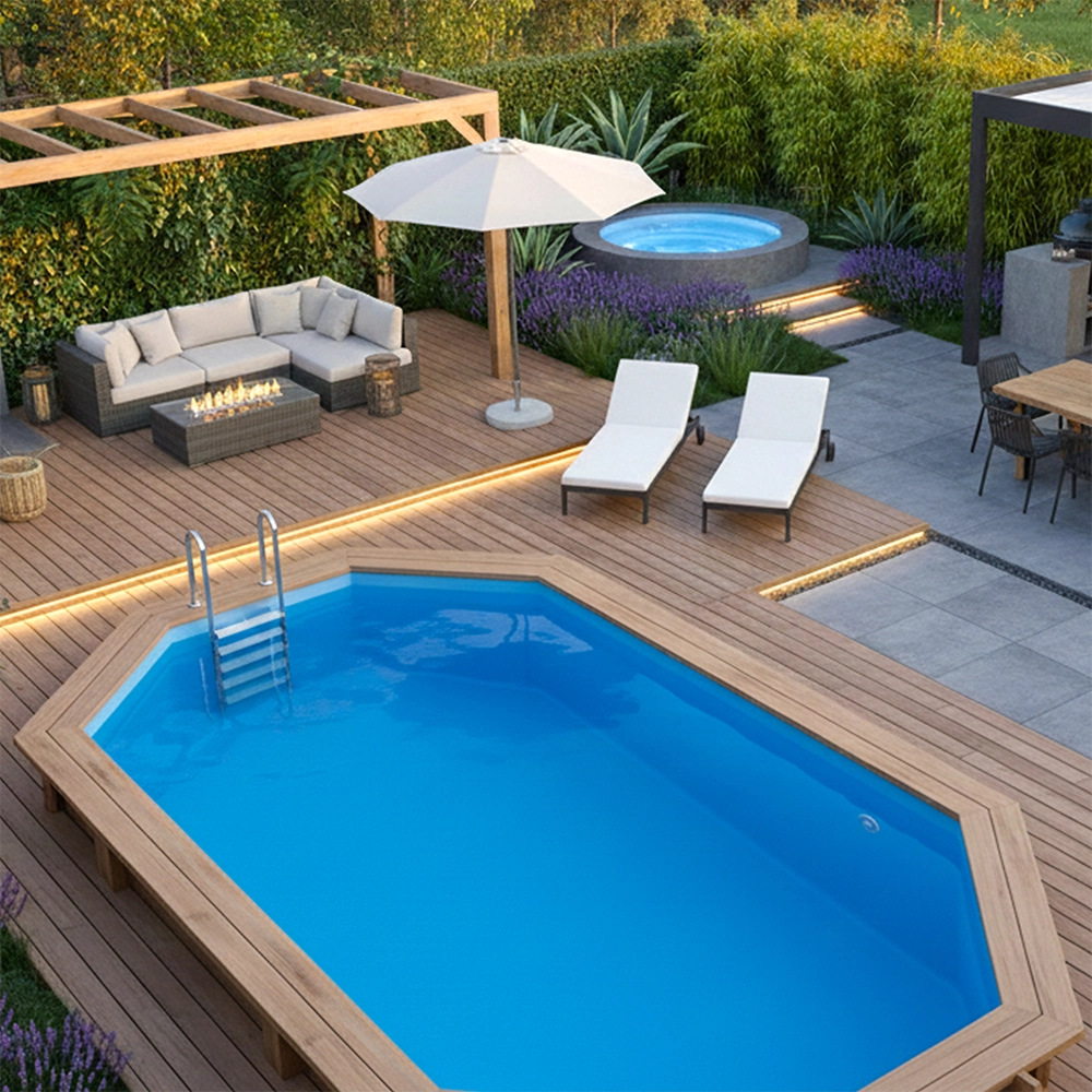als Aufstell- oder (Teil-)Einbaupool (in der Erde versenkt) geeignet