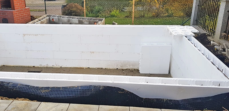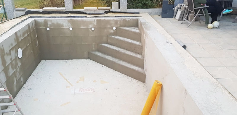 Styroporpool, 1000 x 400 x 120 cm, Basis-Bausatz mit Ecktreppe links