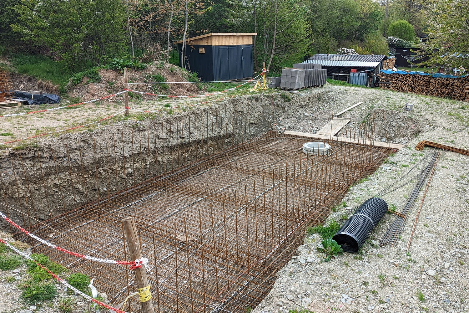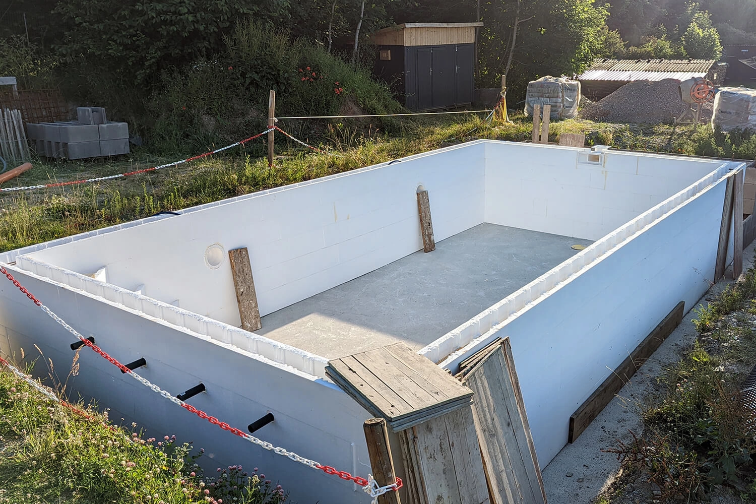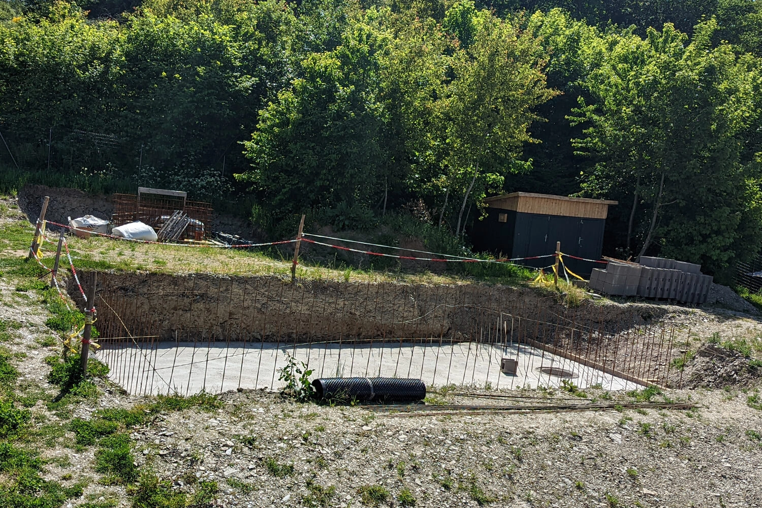 Diese wird mit Sicherheit noch kommen um den Helfern zu danken die bei 30 Grad geholfen haben die Wände zu betonieren. Dies erfolgte an 2 Tagen mittels Betonmaschiene.