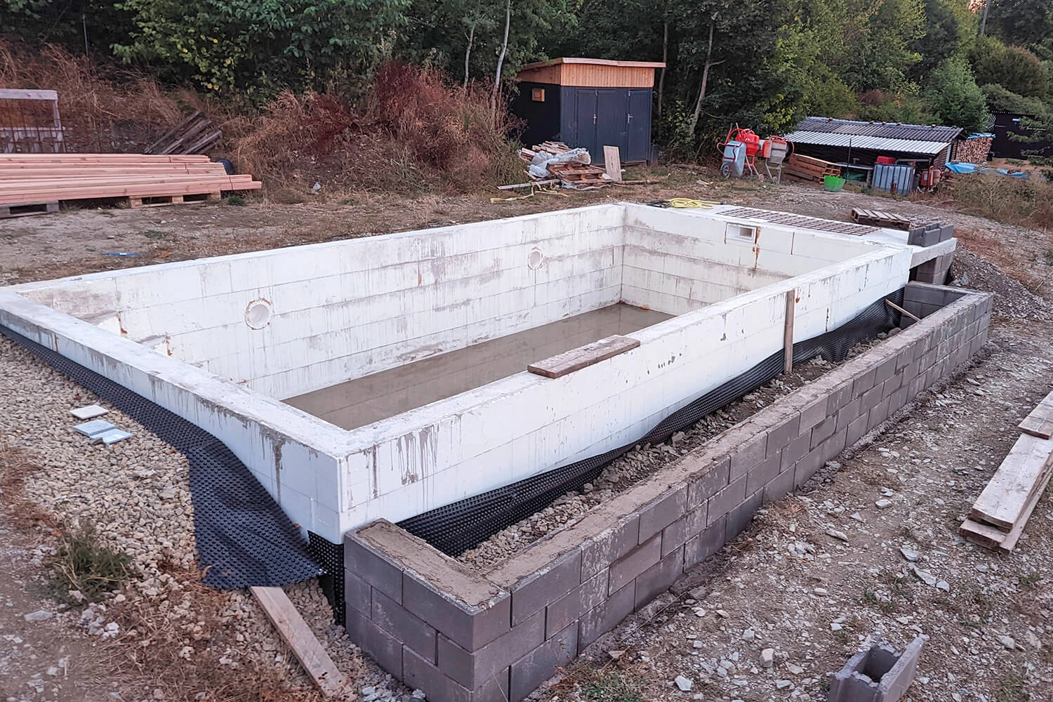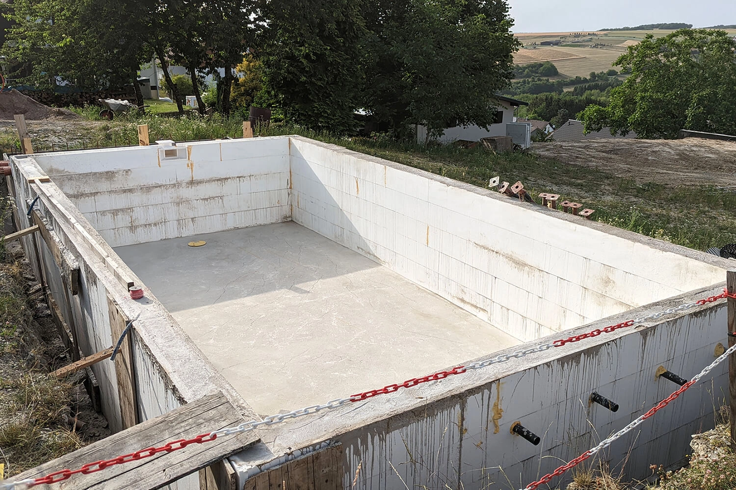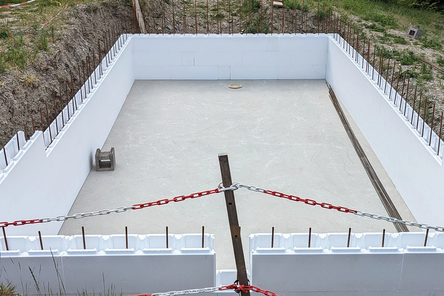 Diese wird mit Sicherheit noch kommen um den Helfern zu danken die bei 30 Grad geholfen haben die Wände zu betonieren. Dies erfolgte an 2 Tagen mittels Betonmaschiene.