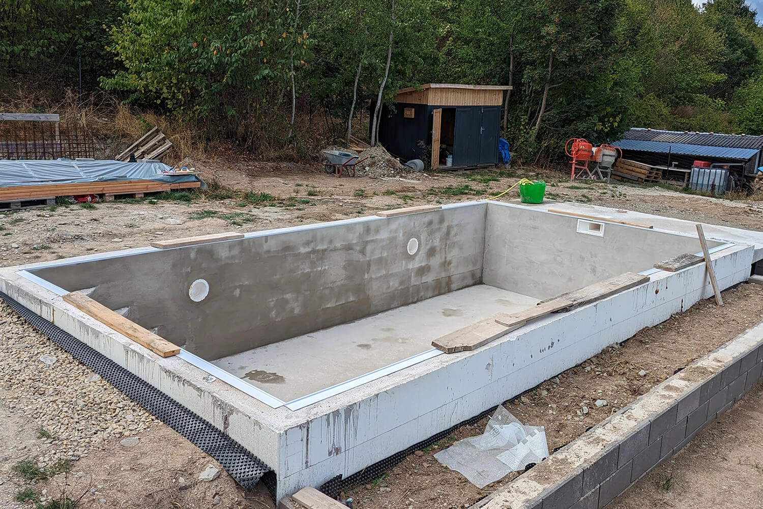 Styroporpool, 1000 x 400 x 120 cm, Basis-Bausatz mit Ecktreppe links