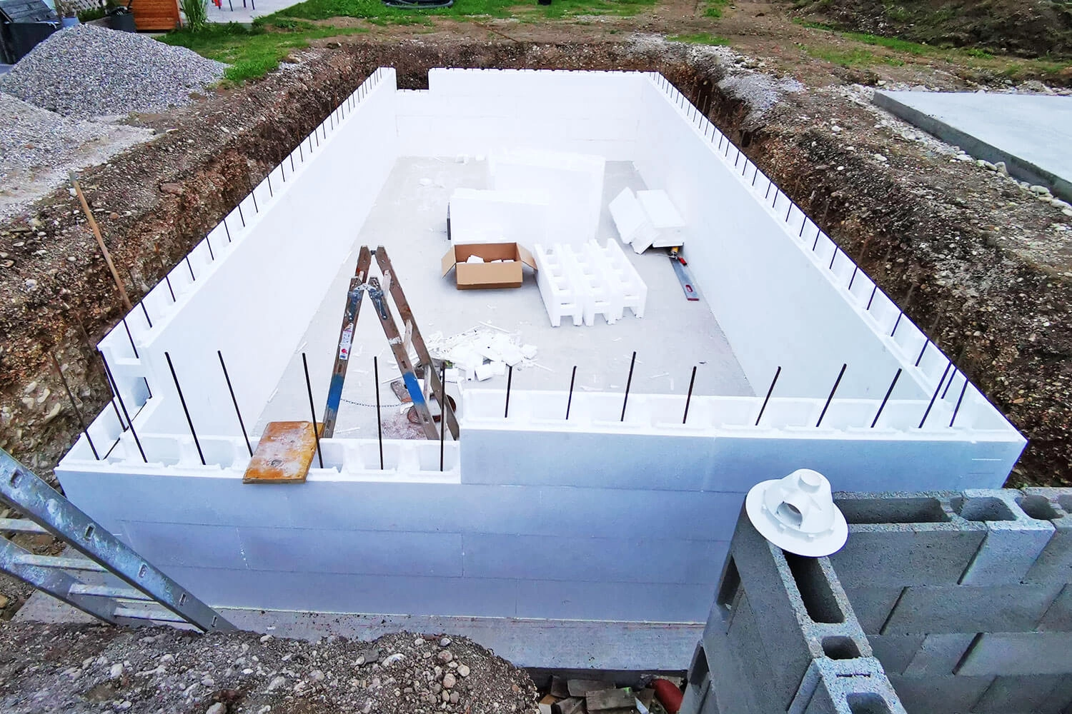 Styroporpool, 1000 x 400 x 120 cm, Basis-Bausatz mit Ecktreppe links