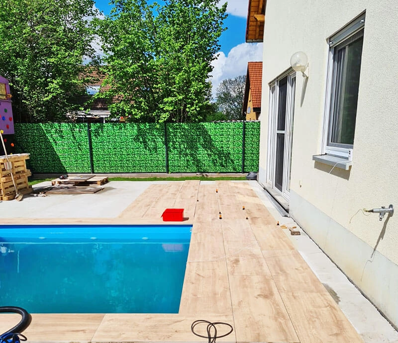 Einkauf und Beratung war schnell und unkompliziert. Sehr freundliches Team. Wir sind mit Pool und Terrasse sehr zufrieden, wollen jetzt aber noch eine Treppe nachrüsten, da uns die Leiter nicht so anspricht.