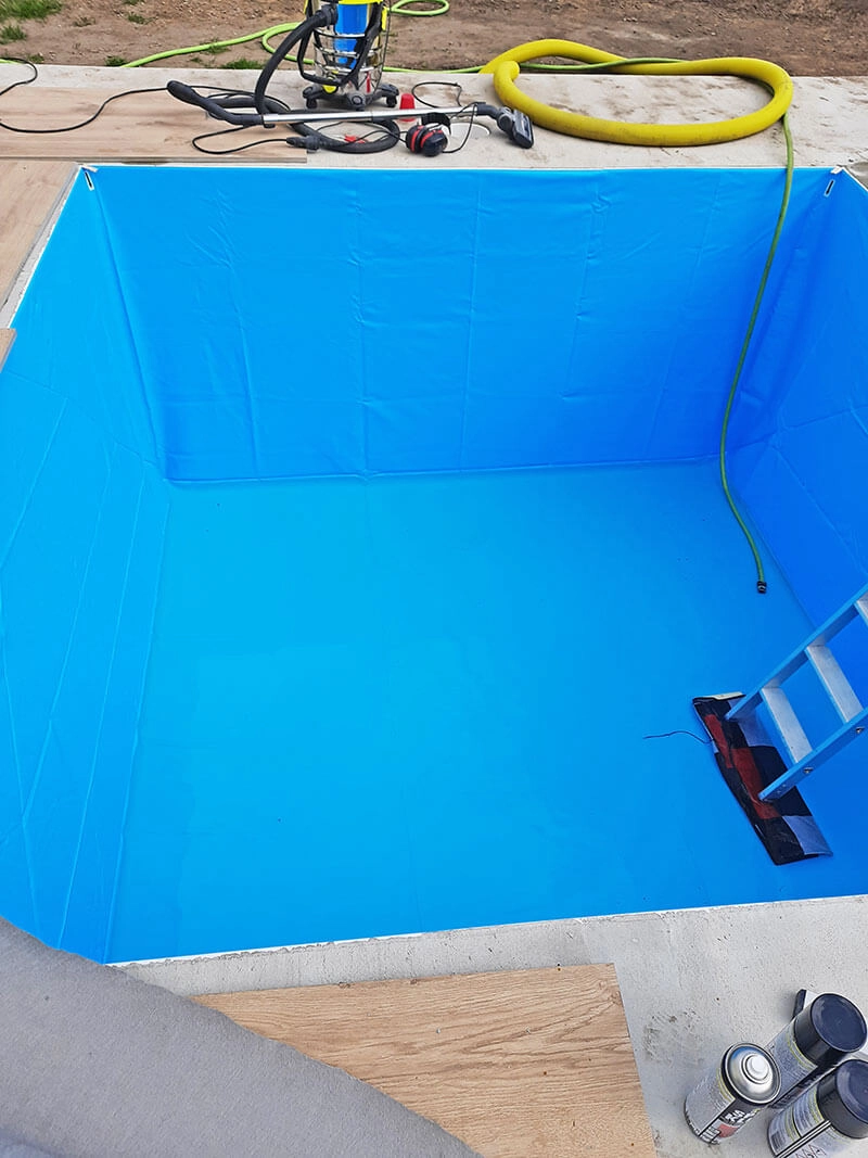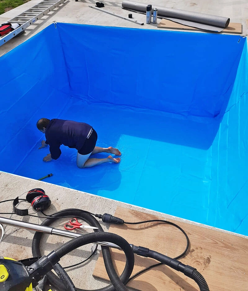 Leichter als gedacht, ging das Einhängen der Poolfolie. Da hätten wir mit mehr Problemen gerechnet. Auch es Faltenfrei hinzubekommen, haben wir uns schwieriger vorgestellt. War am Ende alles unproblematisch.