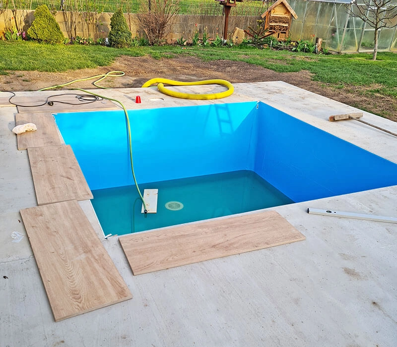 Styroporpool, 1000 x 400 x 120 cm, Basis-Bausatz mit Ecktreppe links