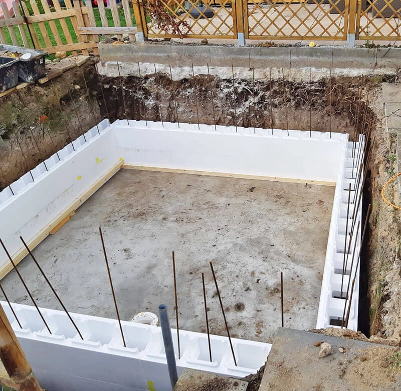 Schwieriger war das Einschalen der Wände, und das Ausgießen des Betons. Wir hatten stark damit zu kämpfen, dass sich kein Bauch bildet.