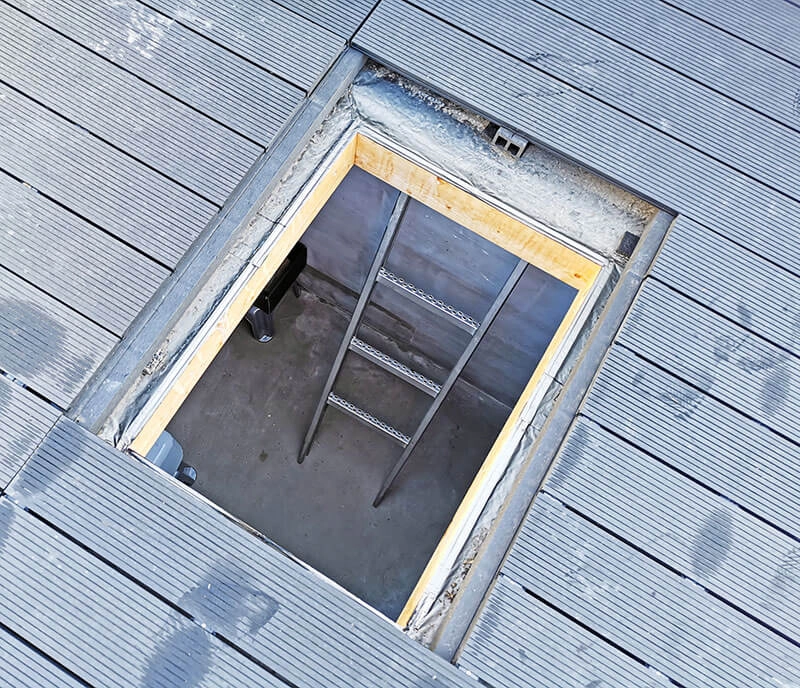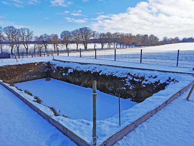 Dezember 2021 bei ca. 0 Grad auf der Baustelle nach der Sauna. Ostern 2022 im endlich fertigen Wellnessbereich.