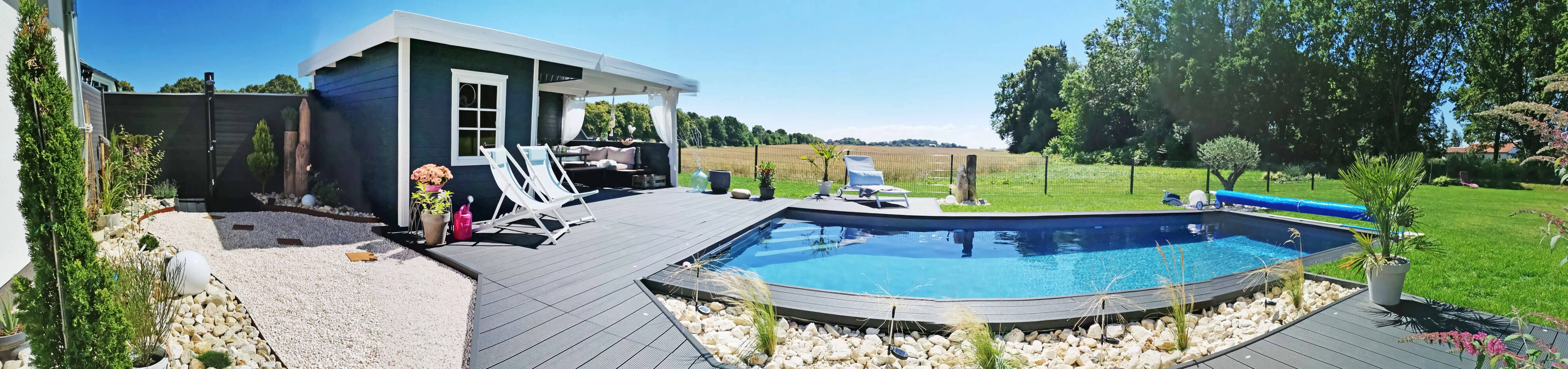 Endlich fertig... was 2018 mit einer großen Grube begann ist heute ein Traum vom Urlaub zuhause. Mit viel Respekt haben wir uns an das Projekt getraut und sind nun total Stolz auf das von uns Erreichte. 2022 macht uns keiner mehr die Poolliege in erster Reihe streitig.