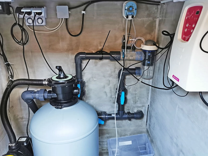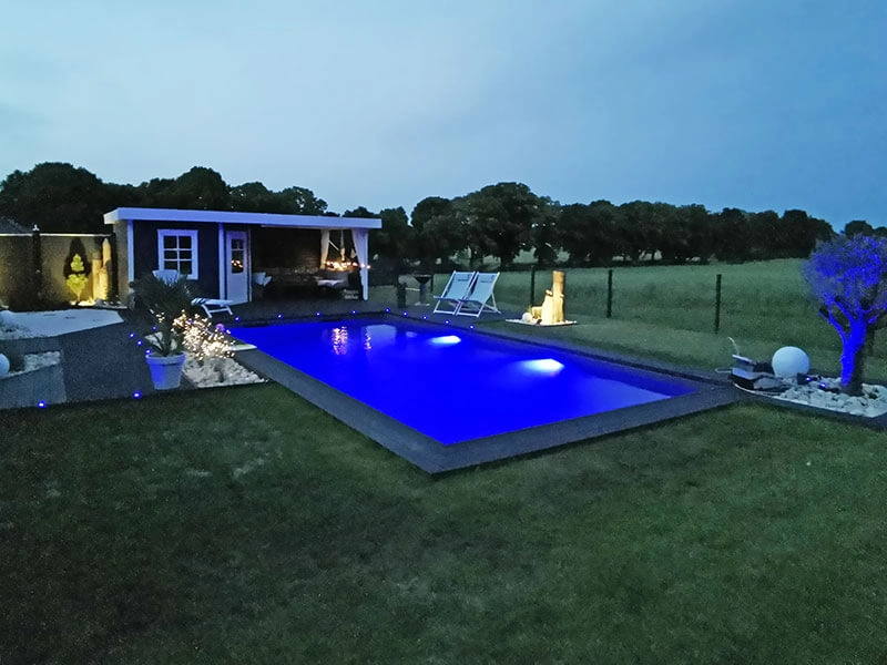Scheinwerfer, 2x Slimskimmer anthrazit, Einlaufdüsen anthrazit, Salzelektrolyseanlage.