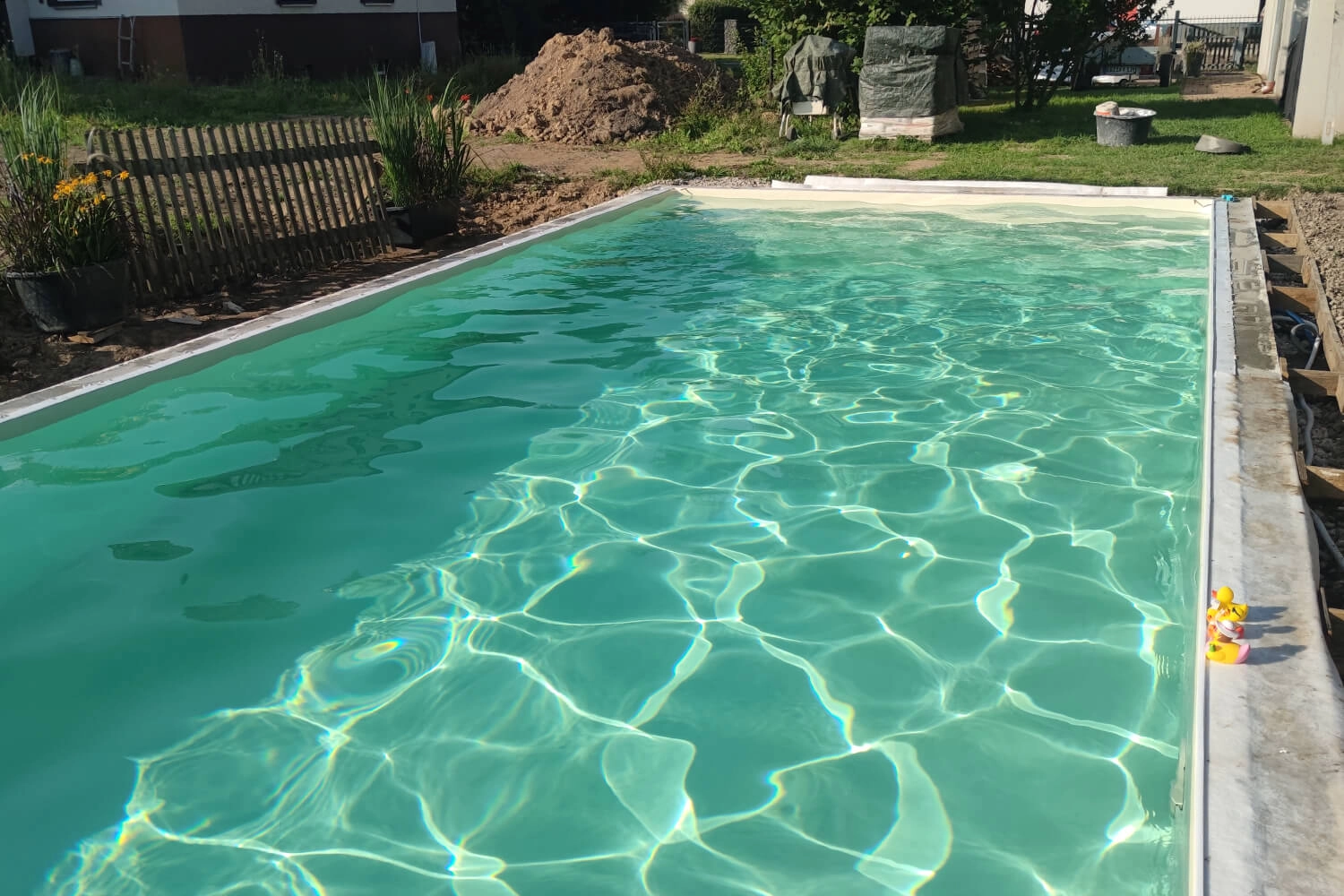 Am 30.07.24 schon während der Befüllung, bei gerade mal 60cm Wasserhöhe. Wir konnten es nicht mehr erwarten.