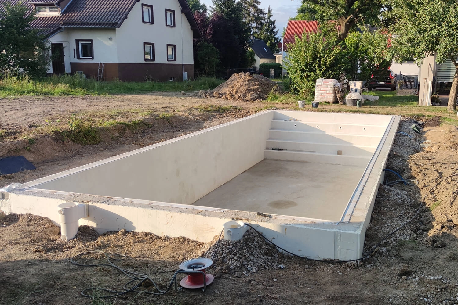 Fällt uns nichts ein... Wir mussten allerdings den Bau öfter unterbrechen,da es immer mal wieder stark geregnet hatte u wir dadurch die Baugrube oder später dann den Pool auspumpen mussten.