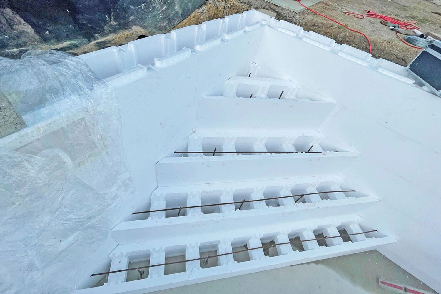 Styroporpool, 1000 x 400 x 120 cm, Basis-Bausatz mit Ecktreppe links