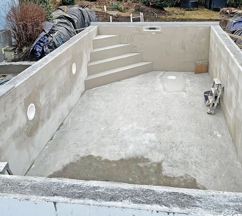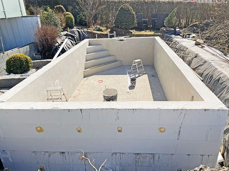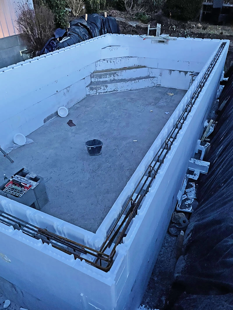 Styroporpool, 1000 x 400 x 120 cm, Basis-Bausatz mit Ecktreppe links