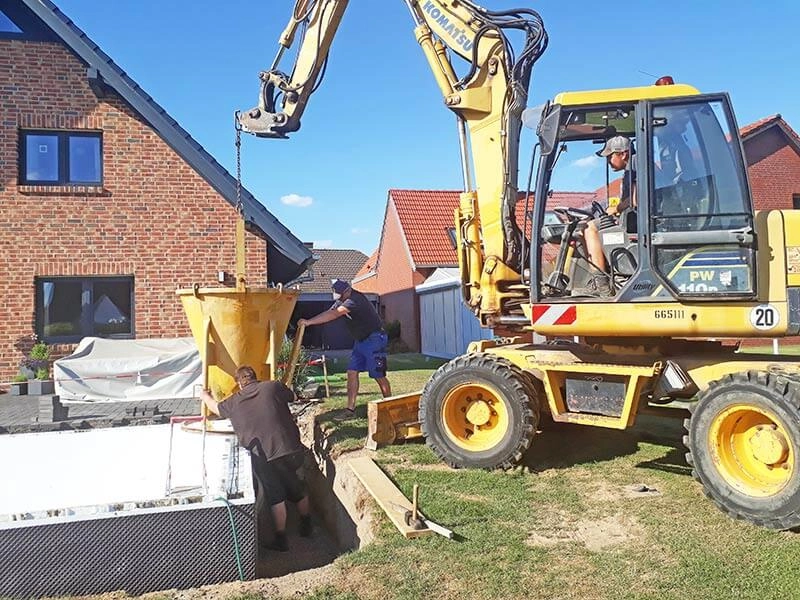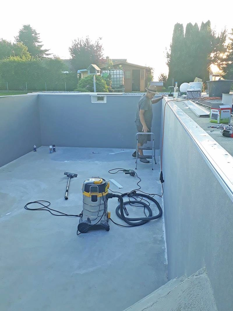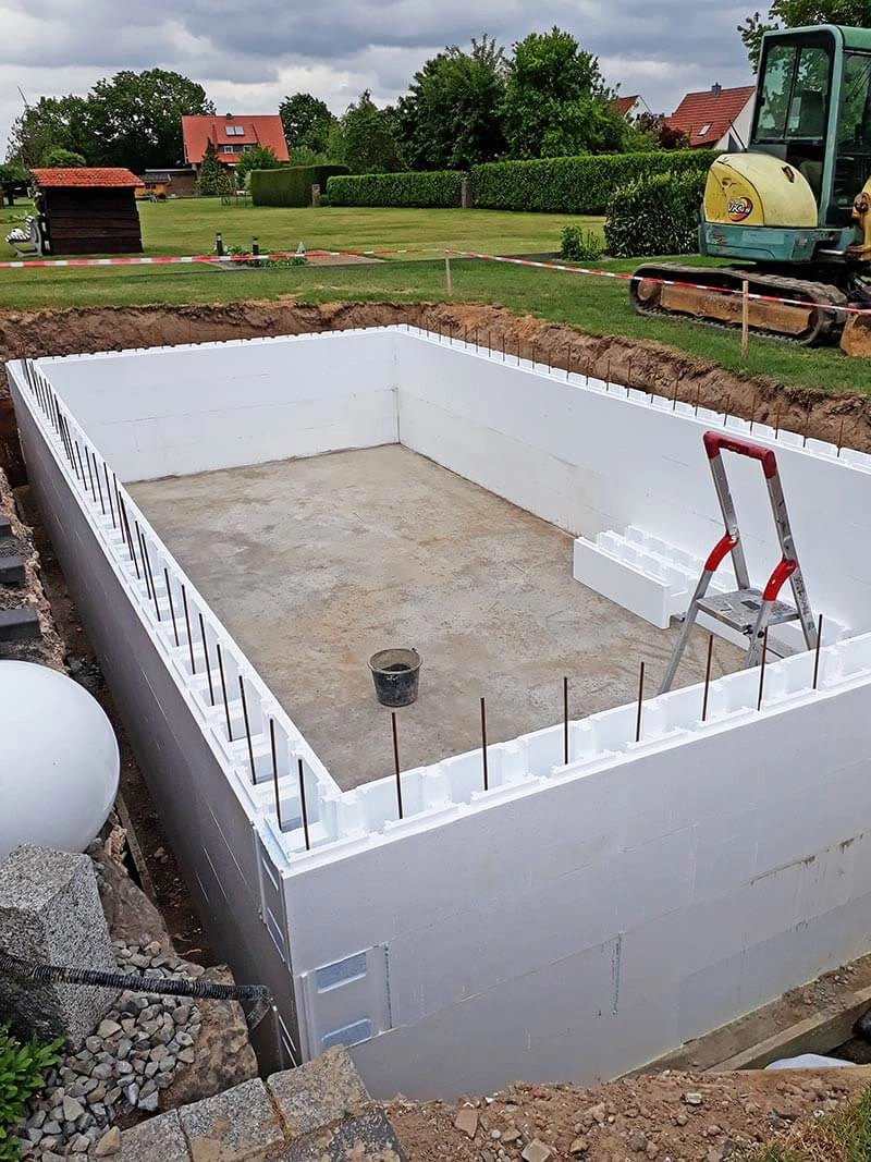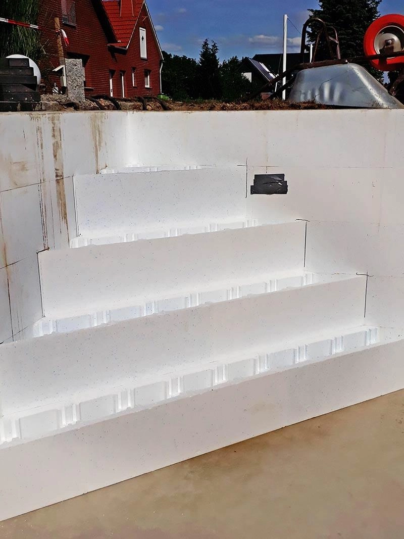 Wir waren es leid bei unserem Framepool jedes Jahr wieder beim Aufstellen Löcher zu flicken und da wir Wasserratten sind haben wir den Schritt gewagt und einen Pool gebaut. Haben uns vorher verschiedene Modelle angeschaut (Stahlwand, Styroporstein, GFK) und der Styroporpool hat uns einfach am besten gefallen.