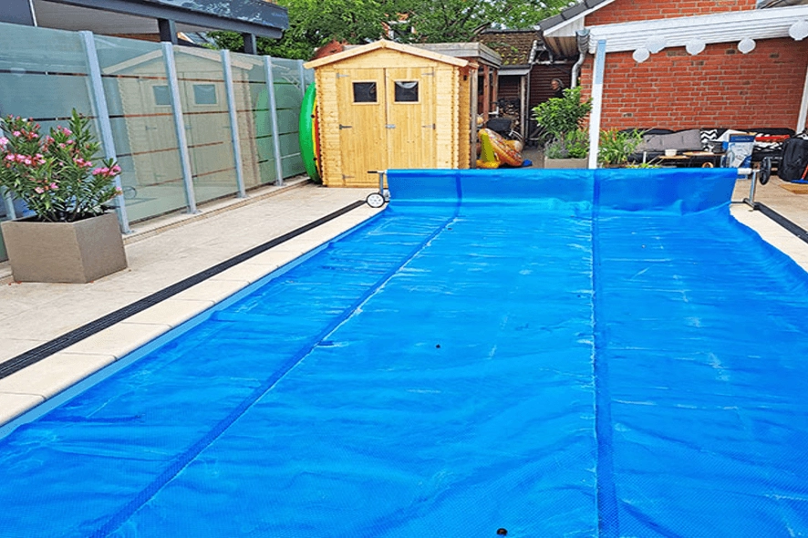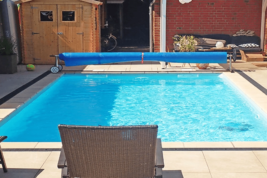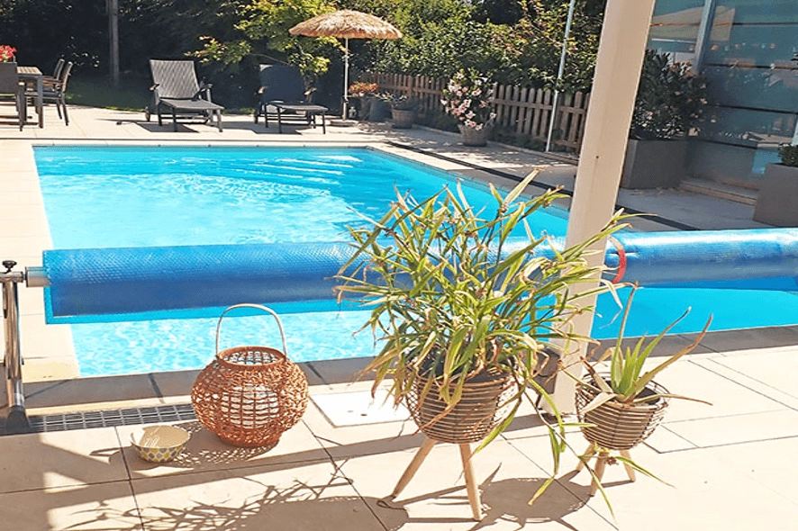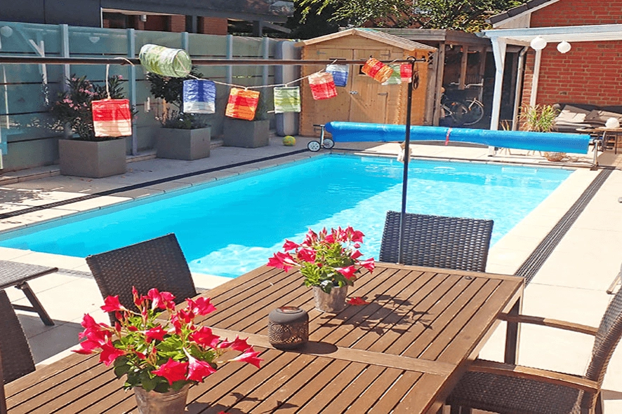 Die hellblaue Poolfarbe bringt uns täglich den Flair mediterraner Urlaubsorte.