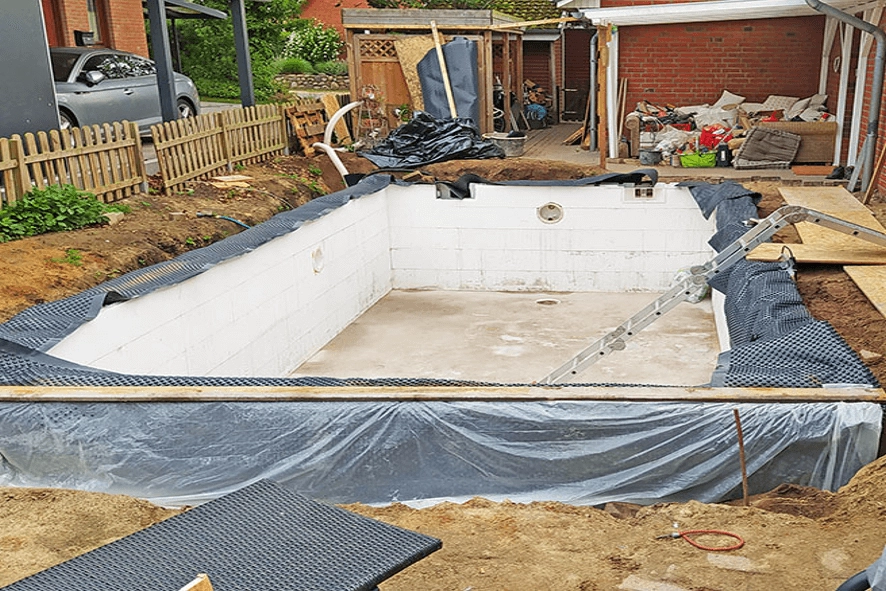 Der Aushub ergibt in Etwa das dreifache des vorher errechneten Volumens. Das sollte man für das Abfuhrunternehmen wissen. Die Grube musste wegen das Starkregens 2021 intensiv gesichert werden. Es bestand die Gefahr des Absackens der benachbarten Auffahrt und unseres Hauses. Der Anschluss und die Unterbringung der Gegenstromanlage hat mir viel Kopfzerbrechen bereitet. Dass es auf dem Markt keine Lösung von der Stange gibt, fand ich ernüchternd. Mein selbstgemauerter Schacht ist aber letztendlich gut gelungen, ein Metallbauer hat mir einen Edelstahldeckel dazu hergestellt, der dann vom Fliesenleger beklebt wurde. Auf solche Extrakosten sollte man gefasst sein. Ende gut - alles gut.