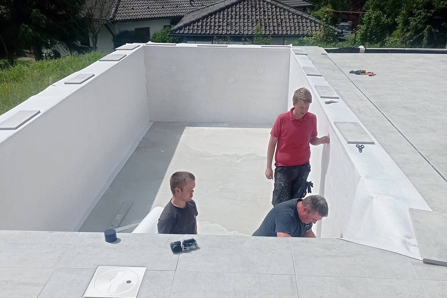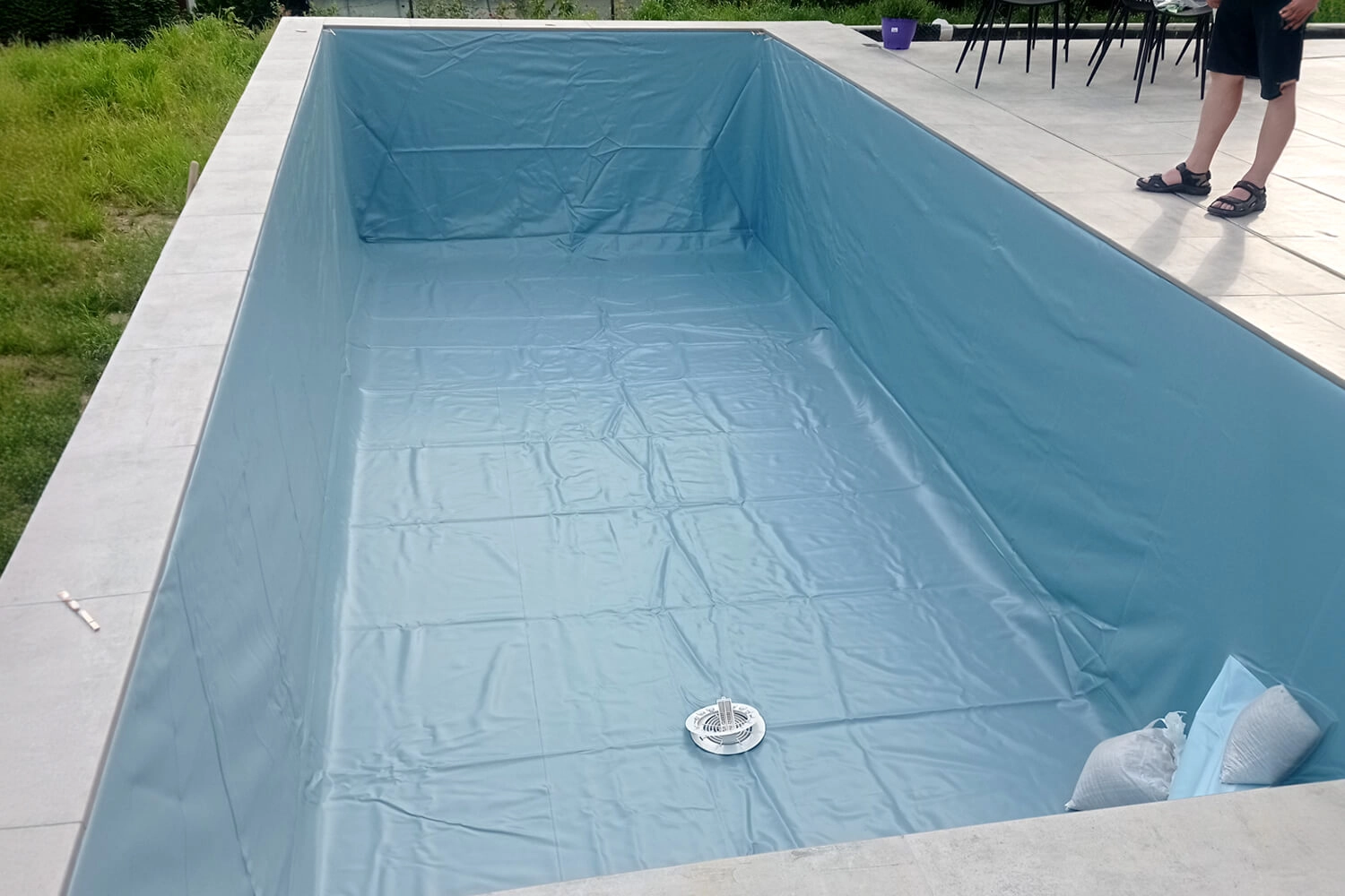 Poolfolie, Abziehen der Bodenplatte