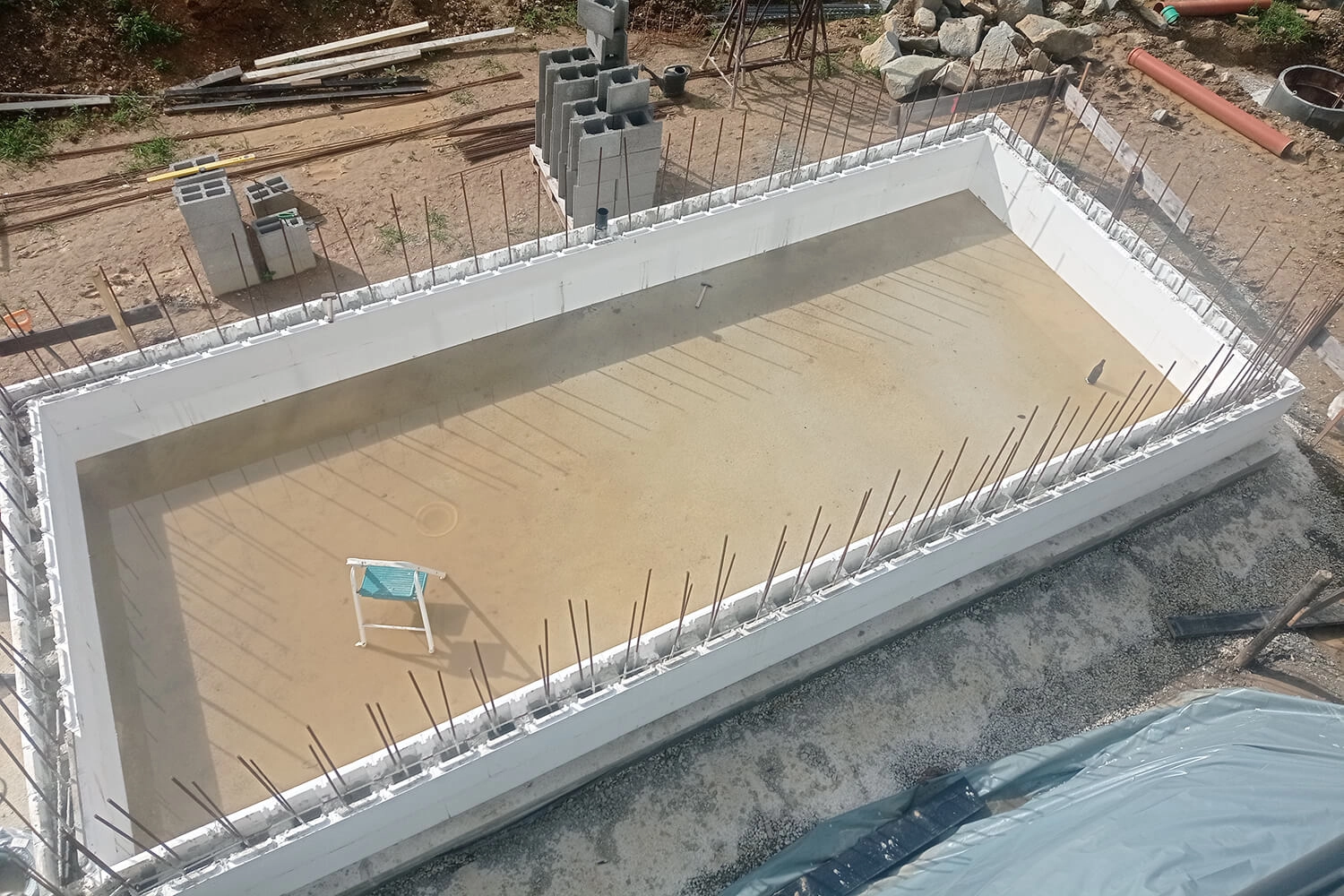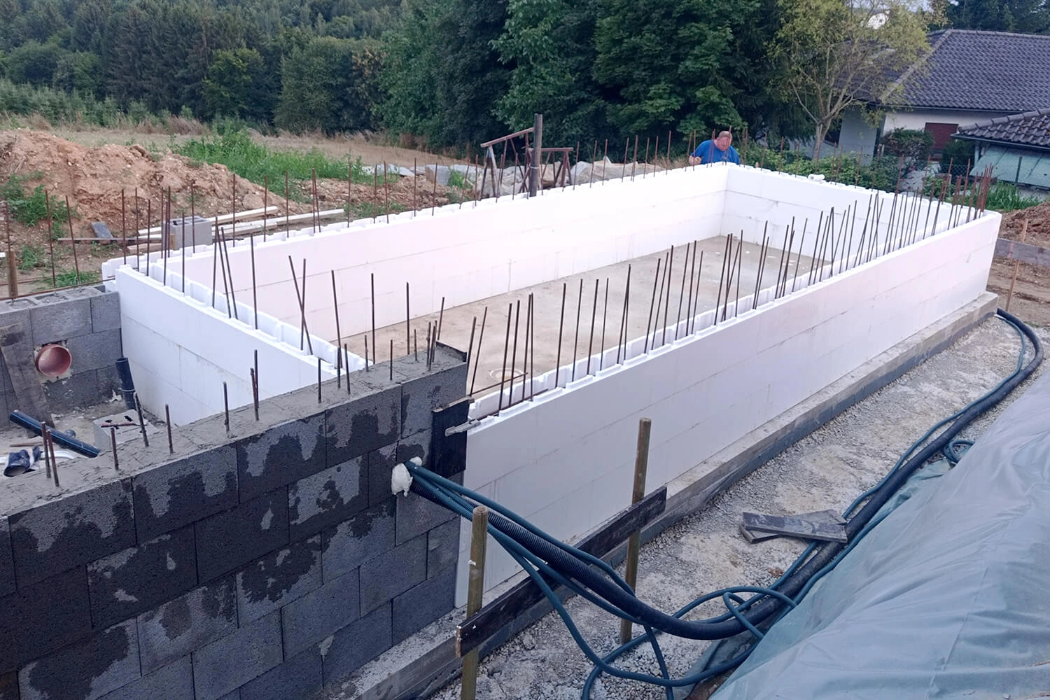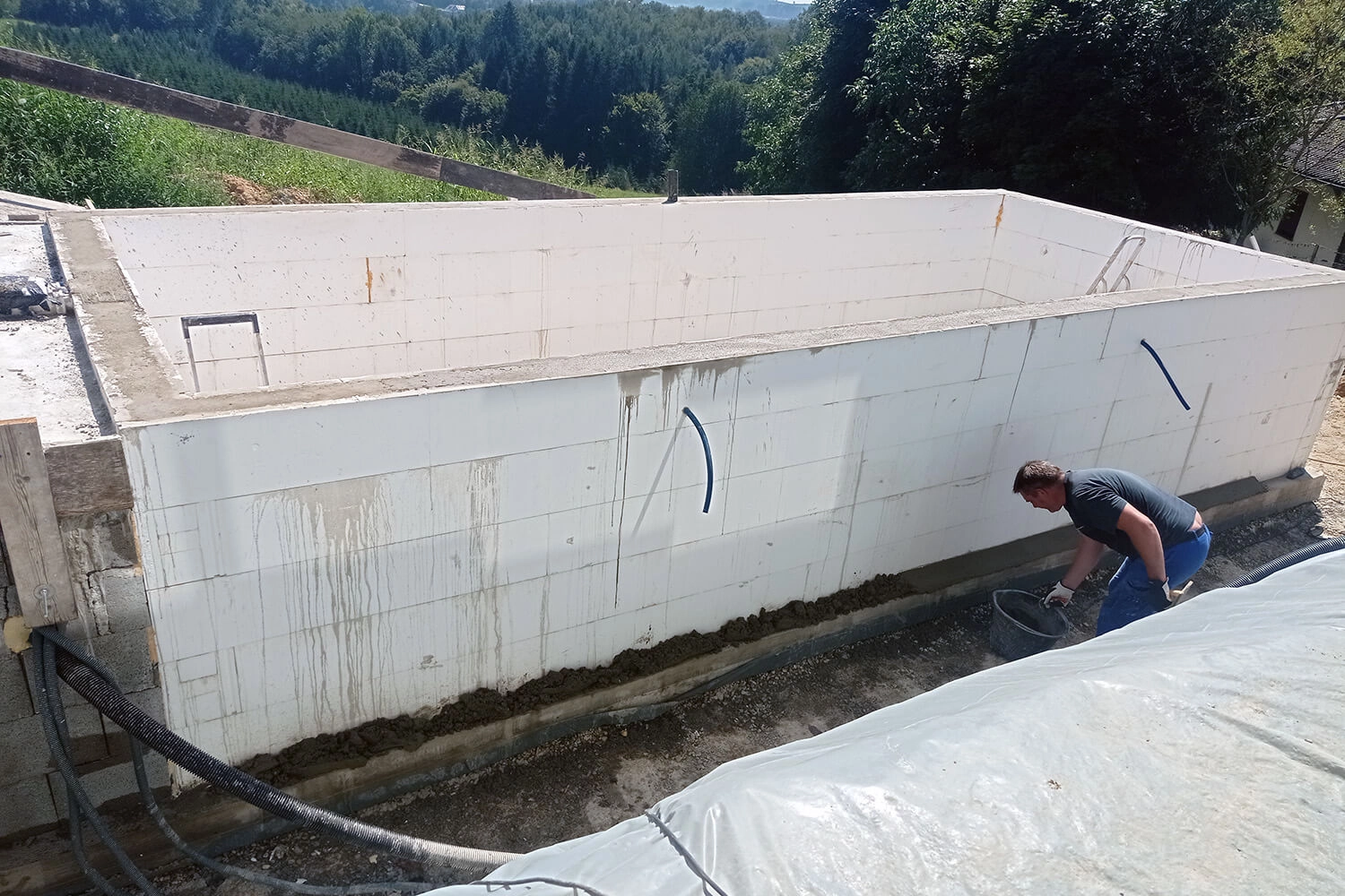 Ein sehr großes Lob an die Service- sowie Versandabteilung von Apoolco. Top-Beratung und Anleitung, v.a. die Videos dazu. Unsere Bauzeit zog sich so lange, da wir nur am Wochenende arbeiteten und unser Pool eine besondere Statik und viel Eisen brauchte, da er auf zwei Seiten freistehend ist. Das Setzen der Styroporsteine war wirklich sehr einfach und das Preis-Leistungsverhältnis toppt alles. Wir würden so eine Art von Pool jederzeit wieder bauen.