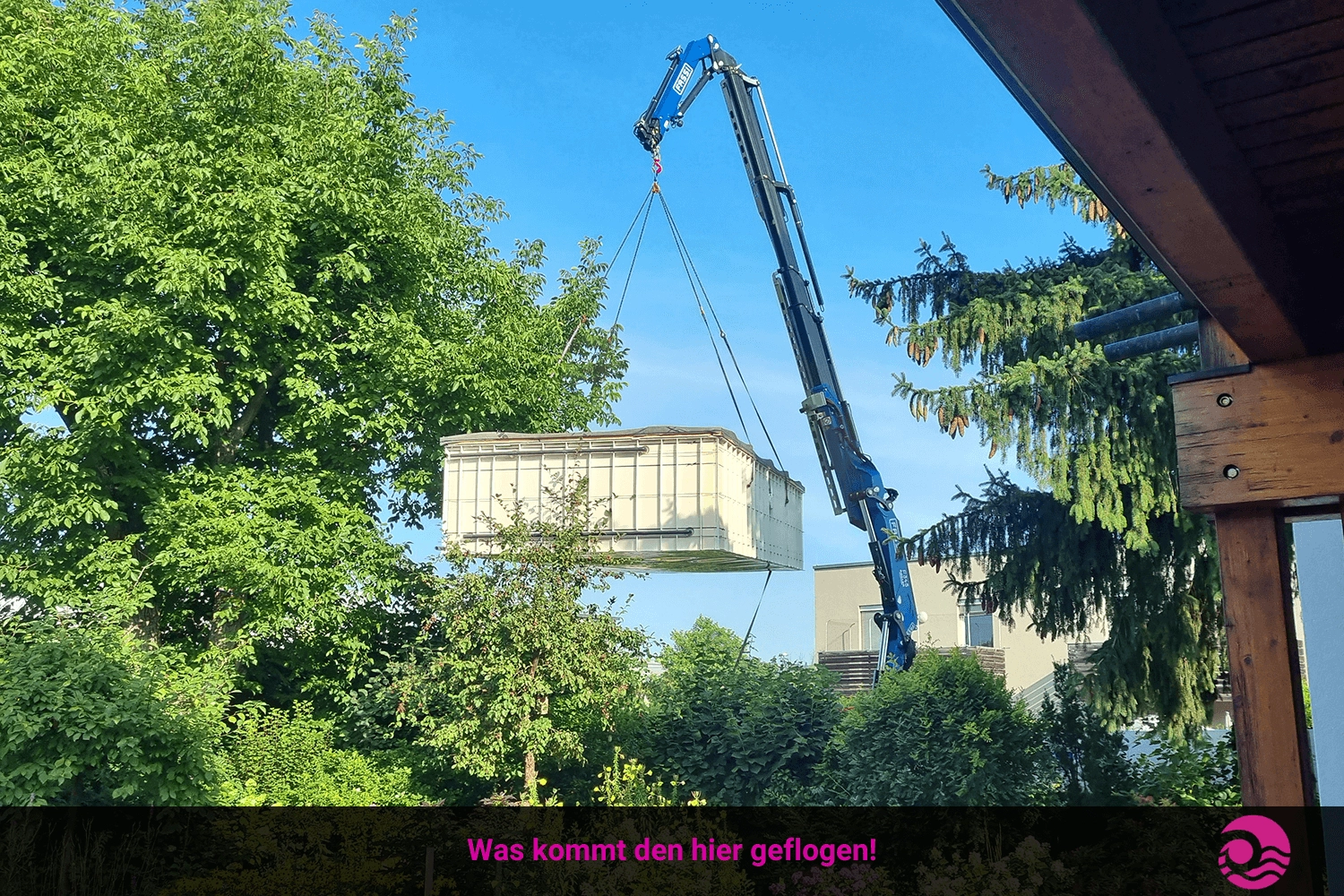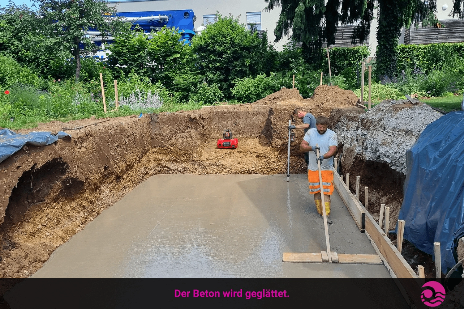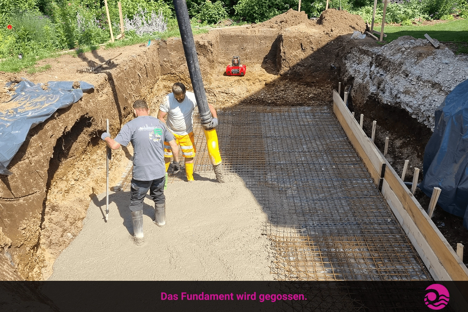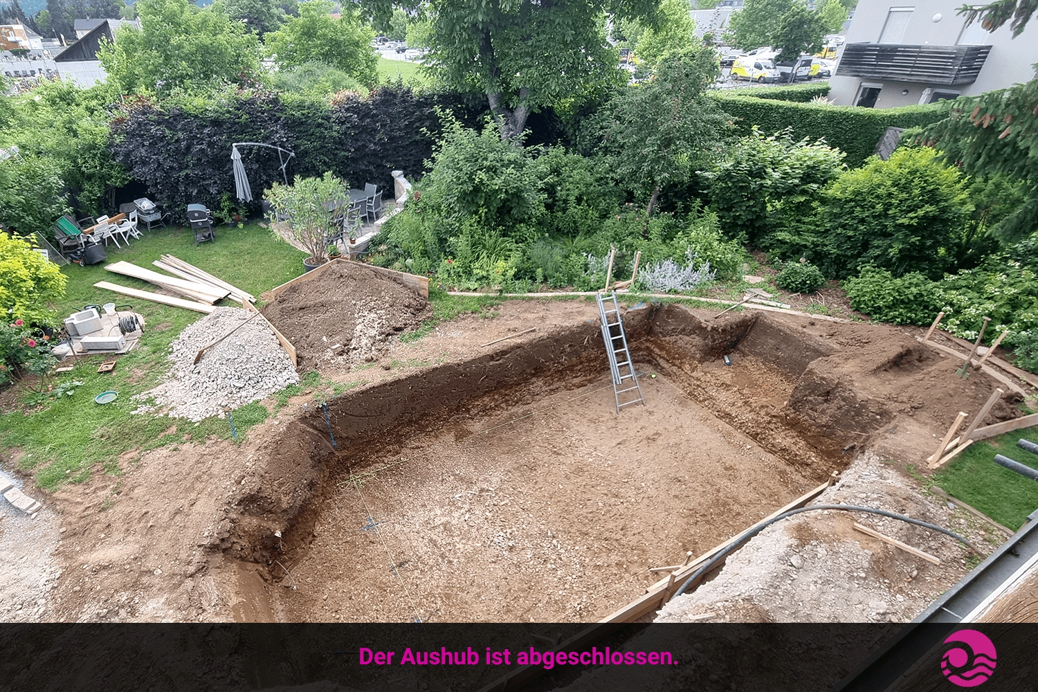 Wir sind begeisterte Wasserratten! Bei der Gartengestaltung standen wir vor der Entscheidung jetzt oder nie einen Pool zu bauen! Wenn die Gartenwege gepflastert und die Sträucher gepflanzt sind, wollten wir unseren Garten später nicht mehr mit schwerem Gerät umackern.