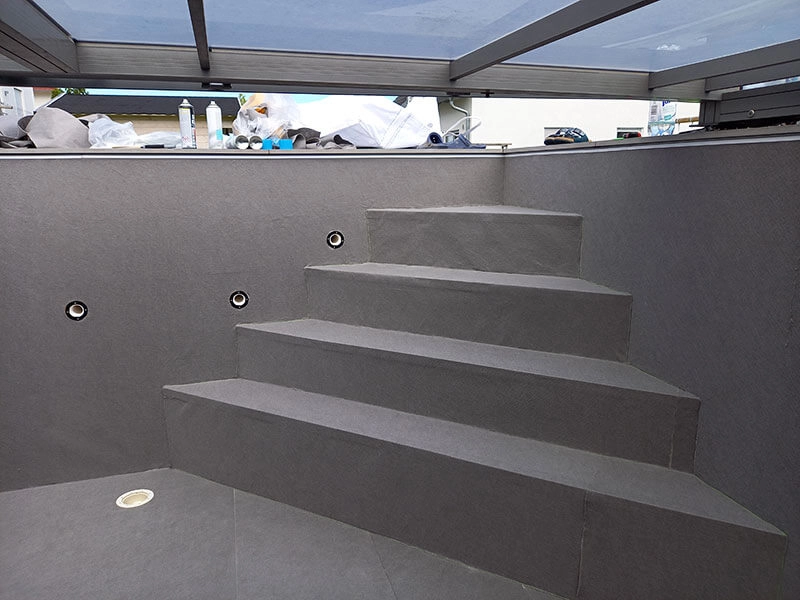 Styroporpool, 400 x 200 x 120 cm, Komplettset mit Treppe links und Sitzbank