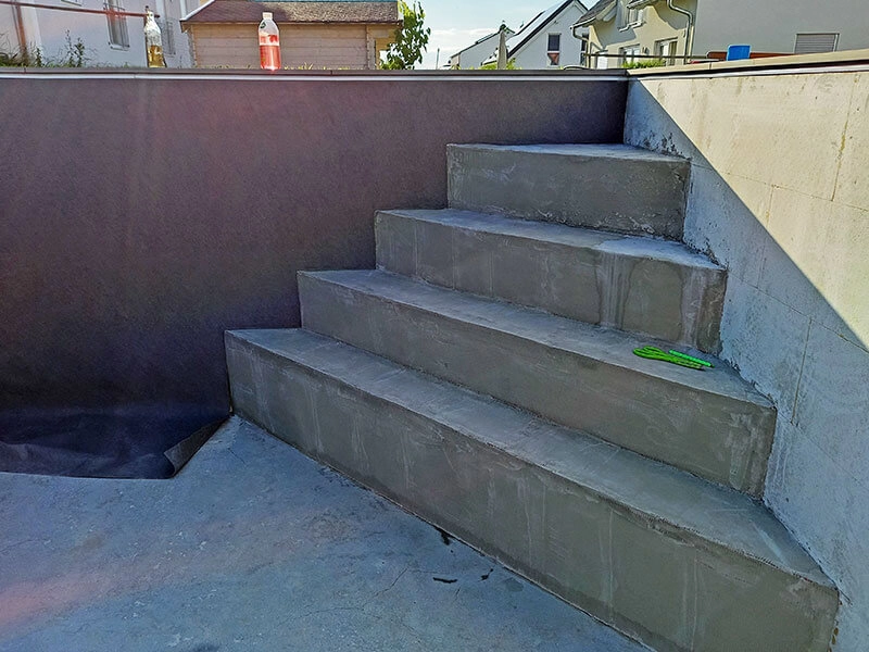 Styroporpool, 1000 x 400 x 120 cm, Basis-Bausatz mit Ecktreppe links
