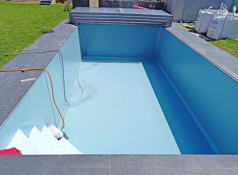 Ca. 1 Woche nach Befüllen sind wir selbst als erstes in den Pool gesprungen.