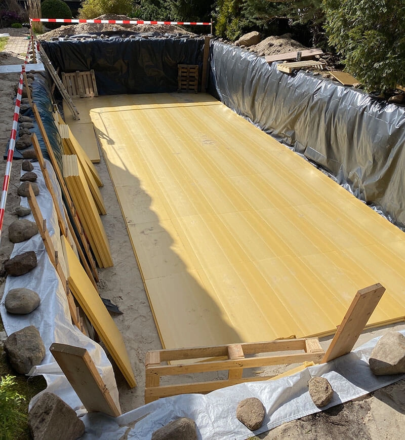 Unabhängigkeit, eigene Wellness-Oase ... es ist z.B. toll abends nach der Sauna in den Pool gehen zu können ... oder zig mal am Tag, wie bei der aktuellen Hitzewelle (August 2020)! Warum genau dieser Pool? Nach gründlicher Recherche haben wir uns aus mehreren Gründen für einen Styroporpool entschieden. 1) Im Raster von 0,25 m war die Größe frei wählbar, sehr wichtig für uns. 2) Im Vergleich zu Pools z.B. von Albixon spielt natürlich das Preis-Leistungs-Verhältnis eine Rolle, letztlich bleibt es ein Pool, den man selbst mit Wärmepumpe nicht viel länger als ein 1/2 Jahr nutzen kann. 3) Wärmetechnisch sicherlich die beste Lösung. 4) Sollte die Folie mal defekt sein, so ist ein Austausch relativ problemlos möglich.