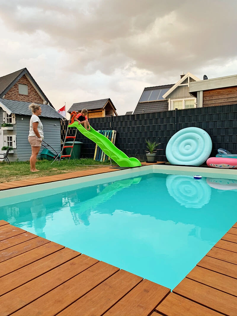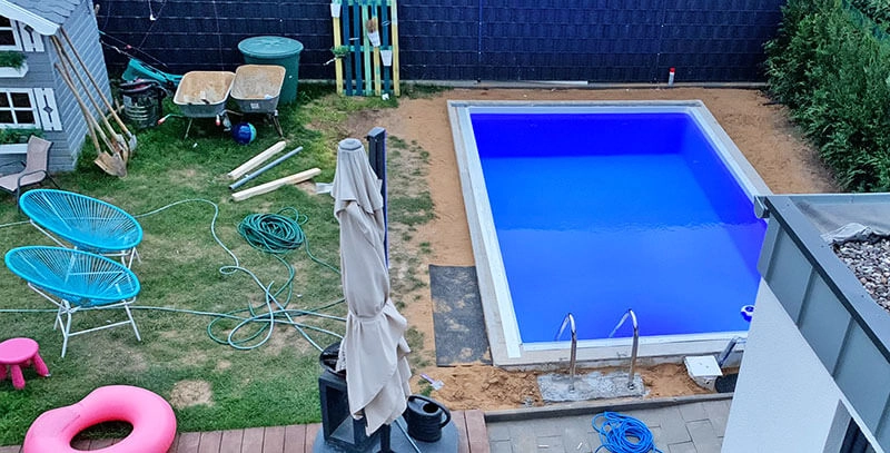 Die Anleitung für den Selbstbau ist wirklich für jeden halbwegs talentierten Handwerker gut umzusetzen. Somit lässt sich ein Pool-Projekt auch im vierstelligen Bereich komplett realisieren. Keine Scheu zeigen uns sich dem Projekt stellen. Es hat wunderbar geklappt!
