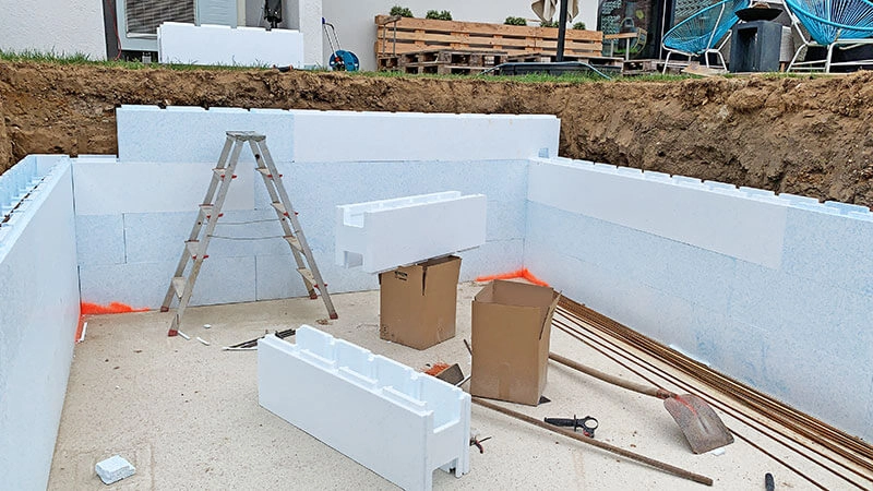 Styroporpool, 1000 x 400 x 120 cm, Basis-Bausatz mit Ecktreppe links