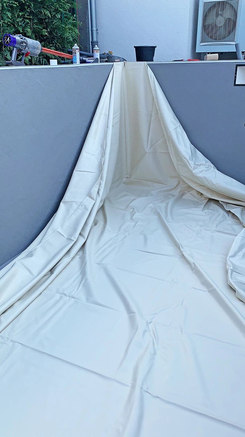 Am meisten Sorgen hat uns das Einhängen der Folie gemacht. Als es dann so weit war, ging es jedoch viel einfacher und schneller als gedacht (sogar mit nur 2 Personen).