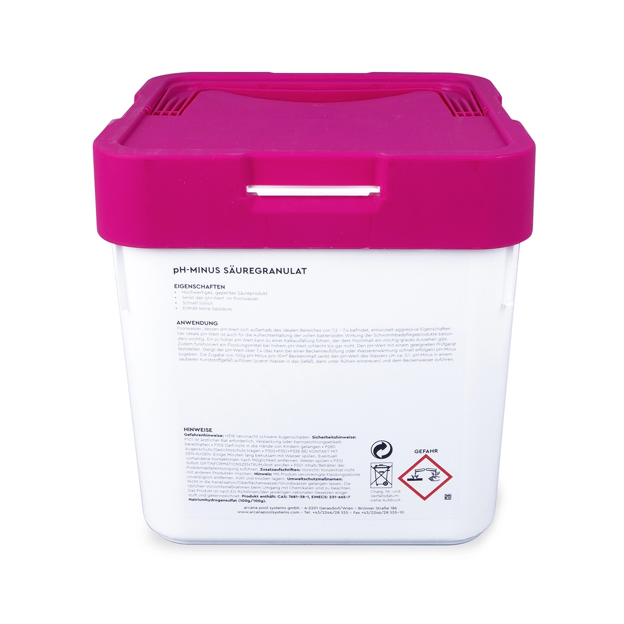 Der pH-Wert ändert sich sofort nach der Auflösung des Pulvers. Überprüfen Sie daher zwischendurch die Senkung des pH-Wertes, um eine optimale Poolwasserpflege zu garantieren.