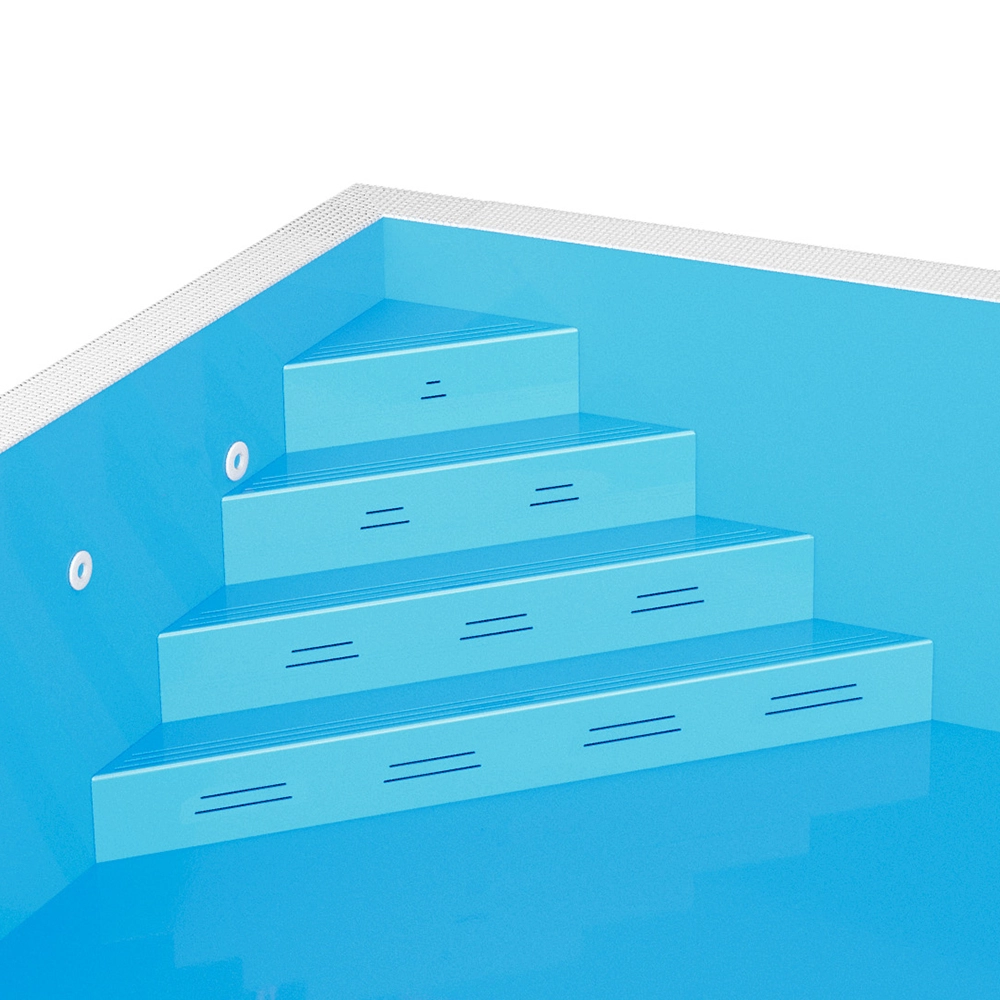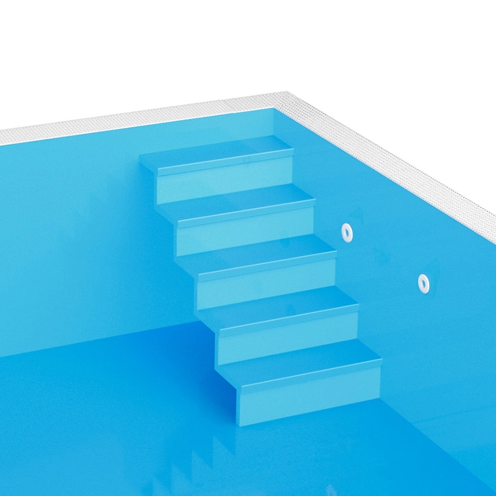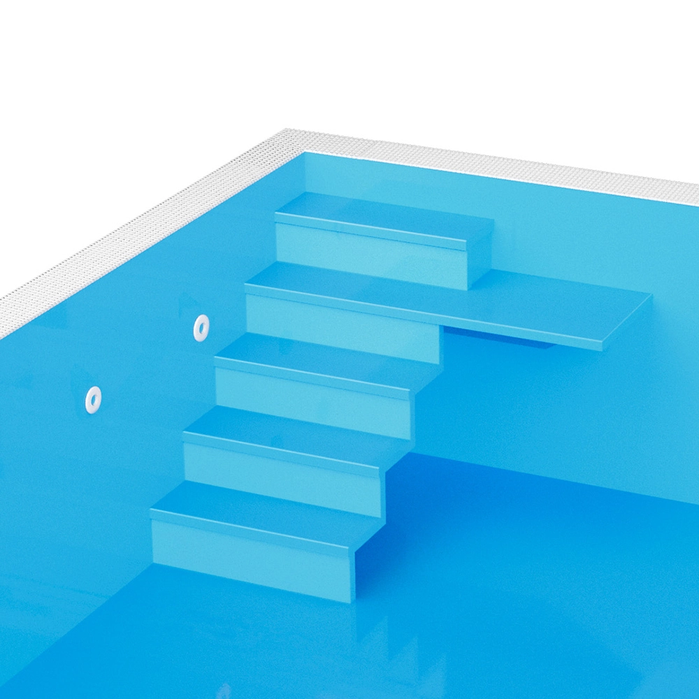 Diese können jeweils in linksseitig, rechtsseitig oder über die ganze Breite positioniert werden. X-AIR-Treppen sind etwas milder abgestuft - ideal für Kinder oder Personen mit eingeschränkter Mobilität. X-AIR+ verfügen zusätzlich über eine Relaxbank für eine entspannte Pause im Wasser. Die einzigartige Designkonstruktion führt zu einer besseren Wasserzirkulation im Pool.