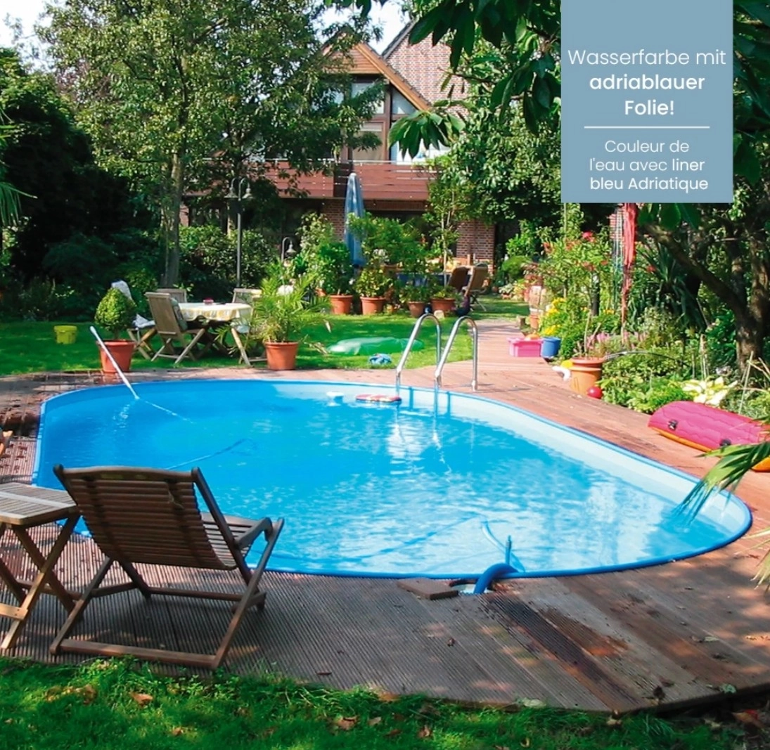 Poolfolie oval, 610 x 375 x 120-135 cm, 0,60 mm, überlappend, blau