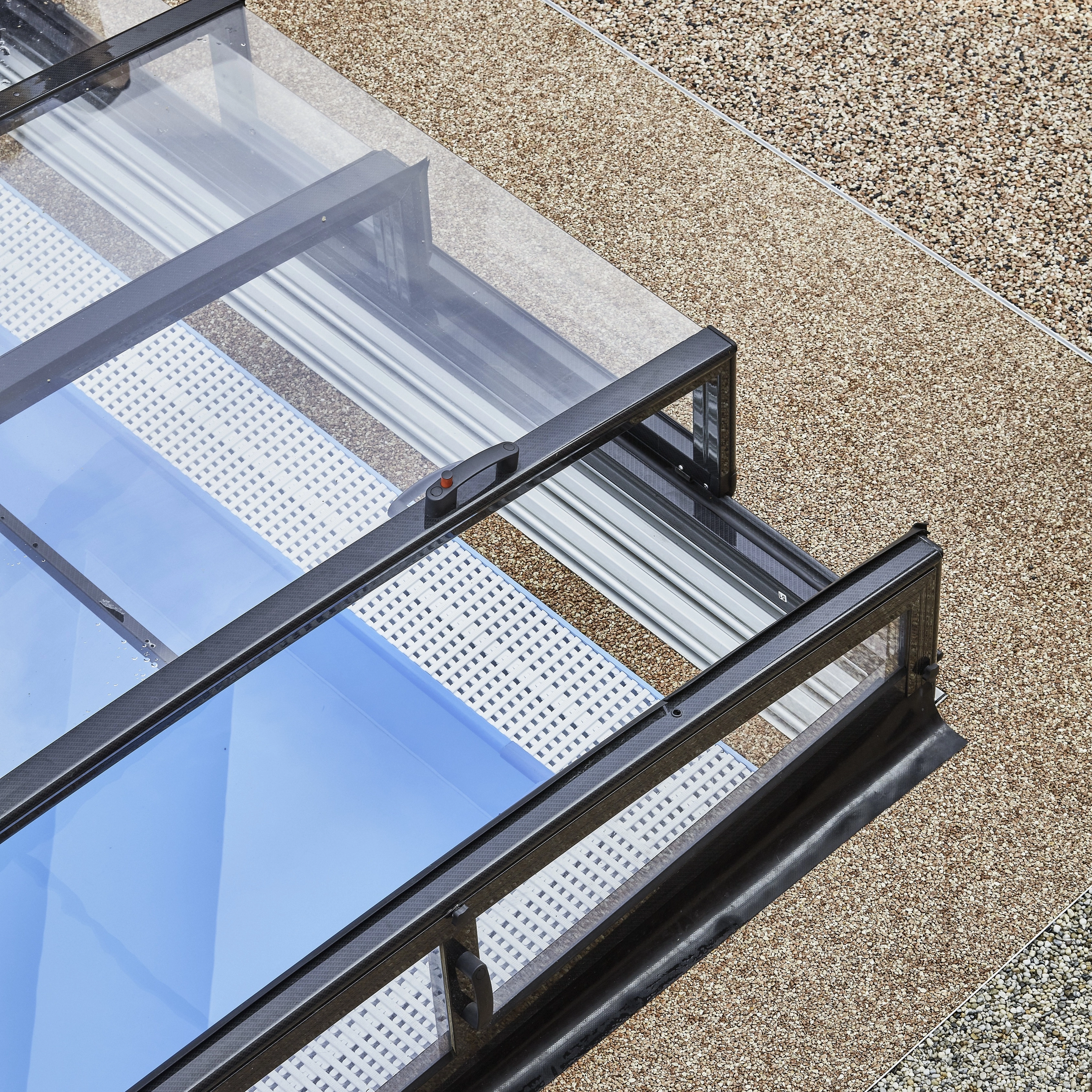Wenn Sie im Sommer Frischluft genießen möchten, kann die Überdachung schnell und einfach komplett geöffnet werden. Die mitgelieferte Schienenverlängerung ermöglicht es Ihnen die Überdachung komplett hinter den Pool zu schiebe.