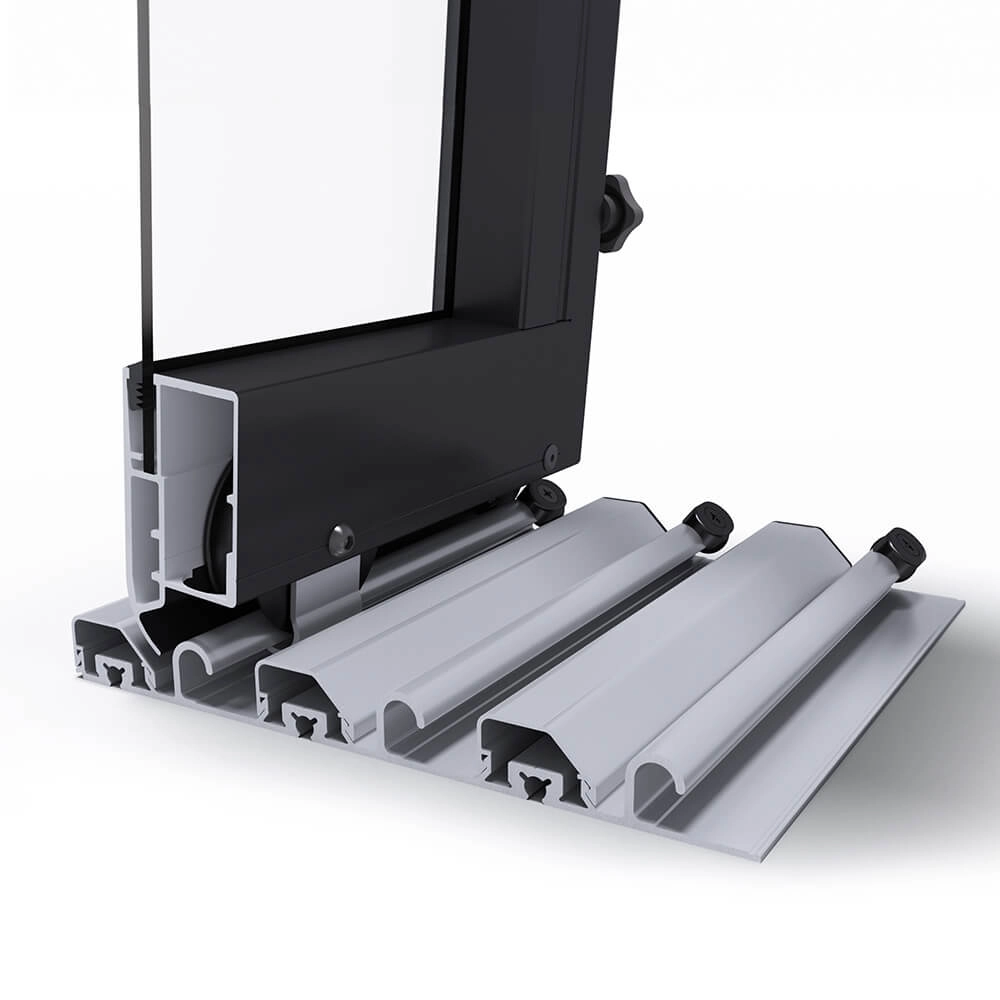 | Besonderheiten / Vorteile: | Abschließbare Schiebetür im ersten Segment, abnehmbare Frontwand, begehbare Schienen, doppelseitige Schienen, durchsichtiges, kompaktes Polycarbonat 4 mm mit UV-Schutz, einseitige Schienen (nur bei Profilfarbe Carbon) |