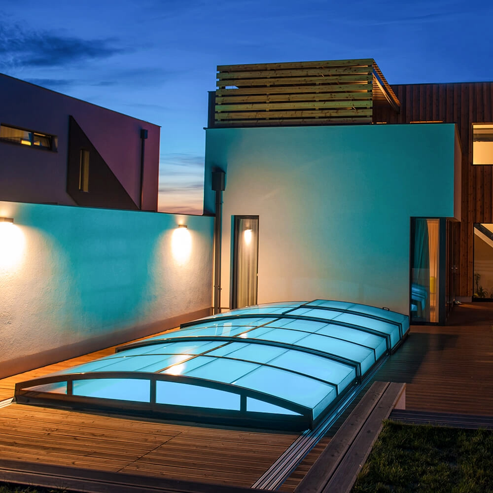 Poolüberdachung AIR, mit Polycarbonat Klarglasplatten