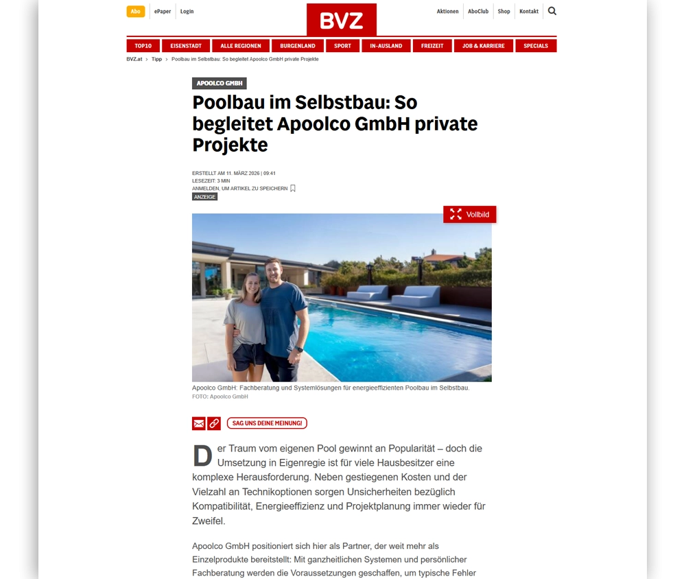 - "Apoolco denkt den Pool als Gesamtsystem, vom Becken bis zur Wärmepumpe."