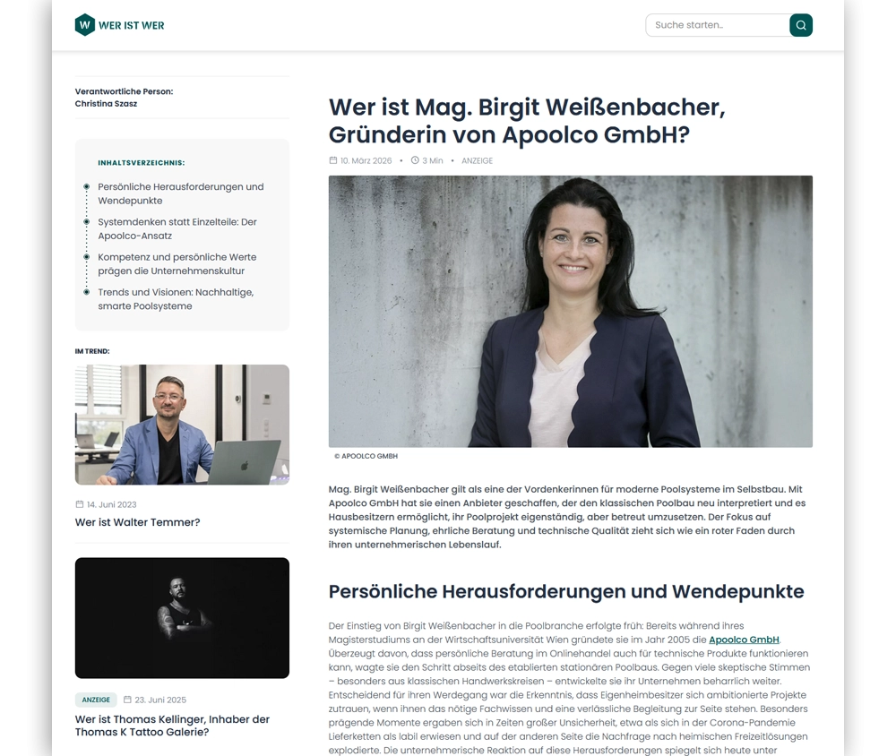 Wer ist Mag. Birgit Weißenbacher, Gründerin von Apoolco GmbH?