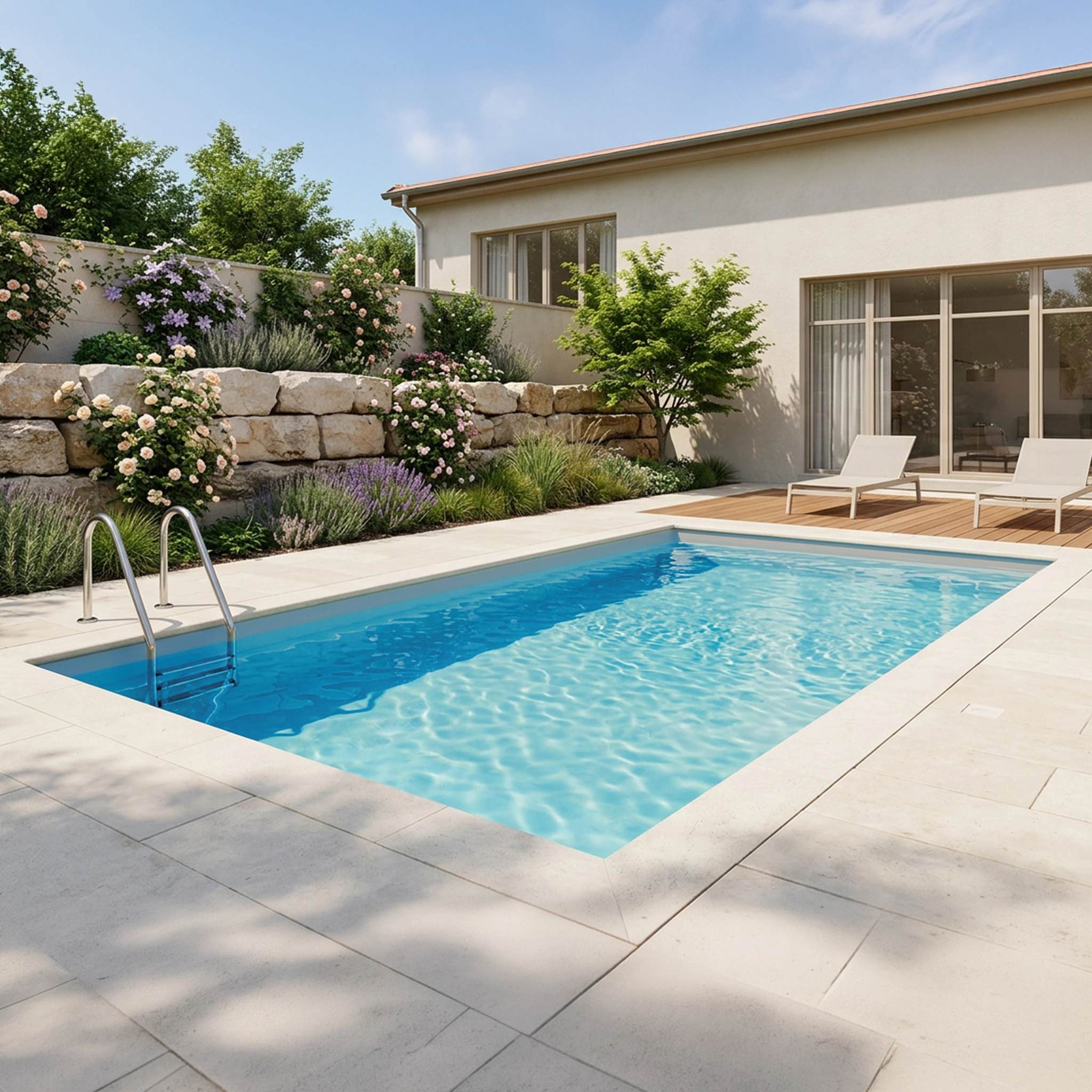 Familie P. aus Neuried Styroporpool mit Treppe und Sitzbank