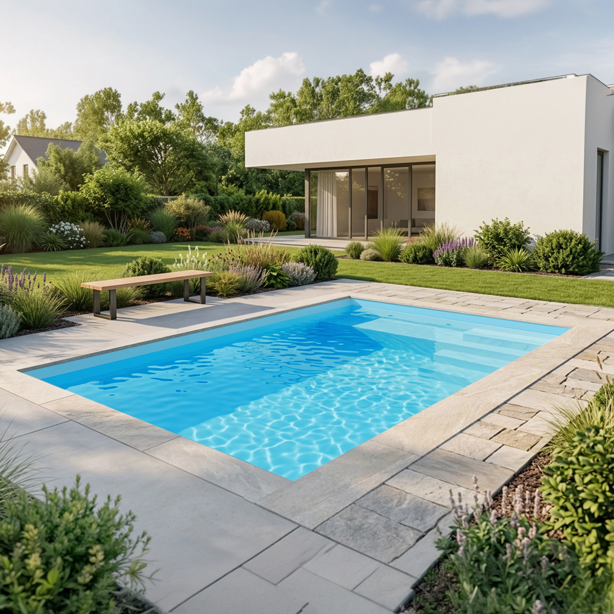Familie P. aus Neuried Styroporpool mit Treppe und Sitzbank