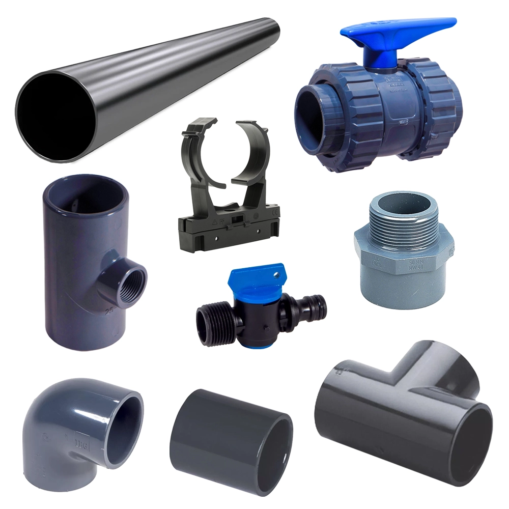 Das Verrohrungsset Ergänzung PN63 wird benötigt, wenn auf der Saugseite eine 63-mm-Verrohrung zum Einsatz kommt und aufgrund einer größeren Distanz zwischen Pool und Filteranlage längere Leitungswege überbrückt werden müssen.
